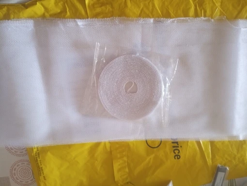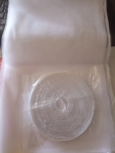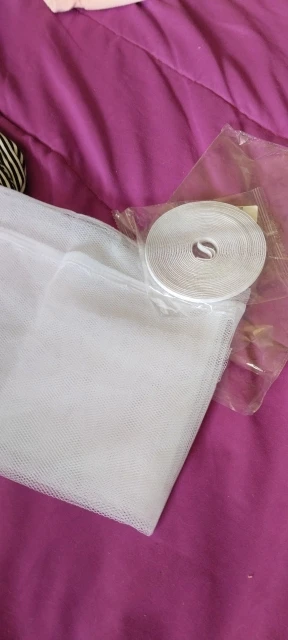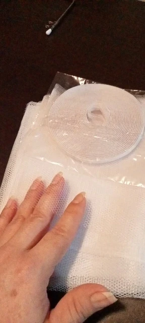Просто Белый Тюль и липучка. Но нормально за эту цену. Я худые кошки уничтожат его в течение нескольких минут, но, честно говоря, это не рекламируется как кошка-доказательство :)