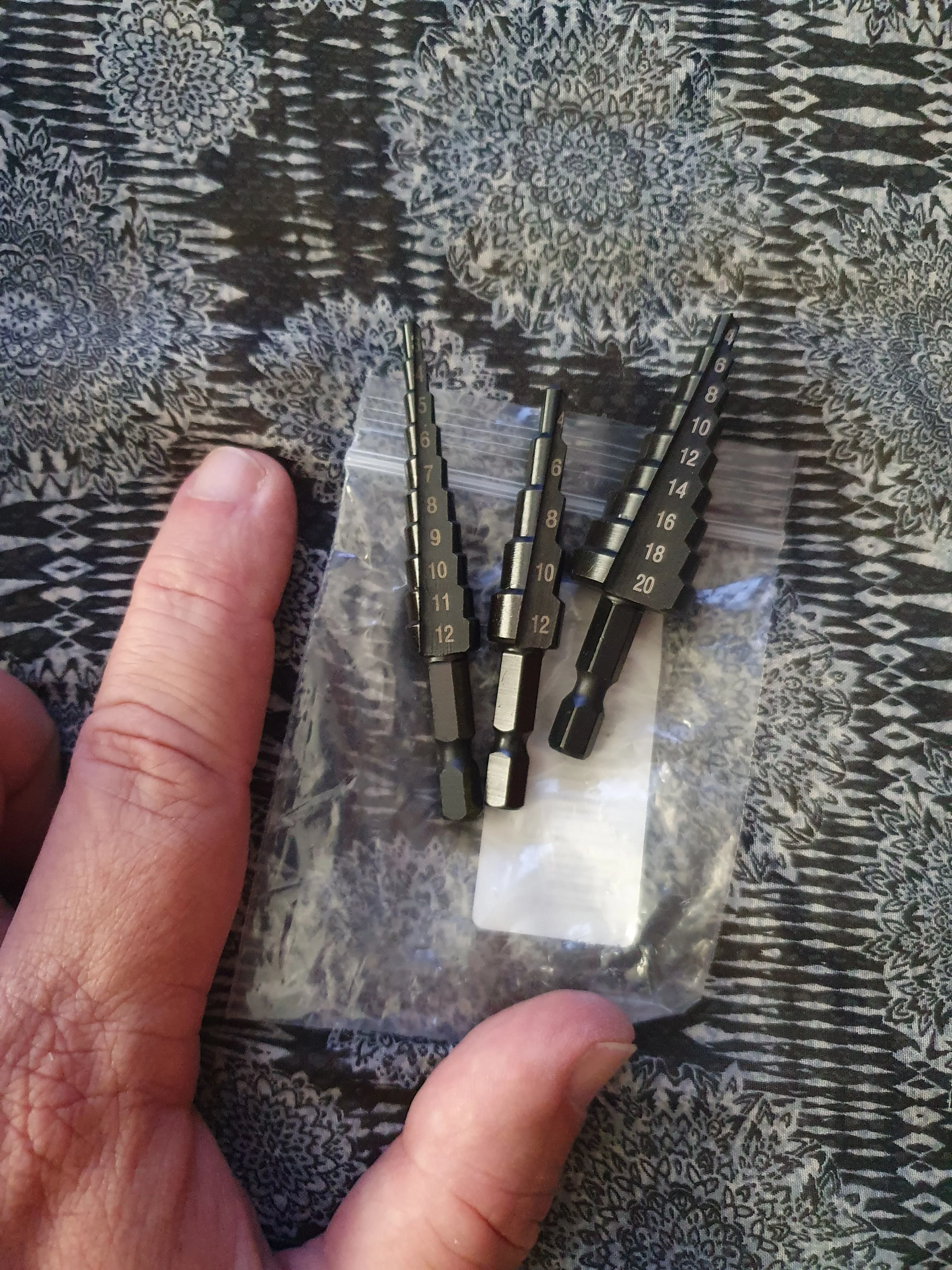 Я еще не использовал его, но, увидев материал, я думаю, это хорошее предложение по этой цене. Я бы использовал другое сверло, чтобы просверлить отверстие, чтобы вставить ступенчатое сверло. В противном случае он может быстро потерять остроту.