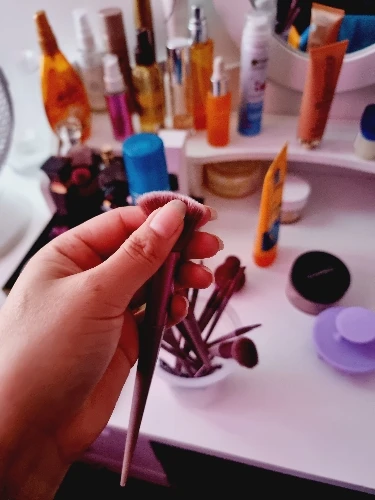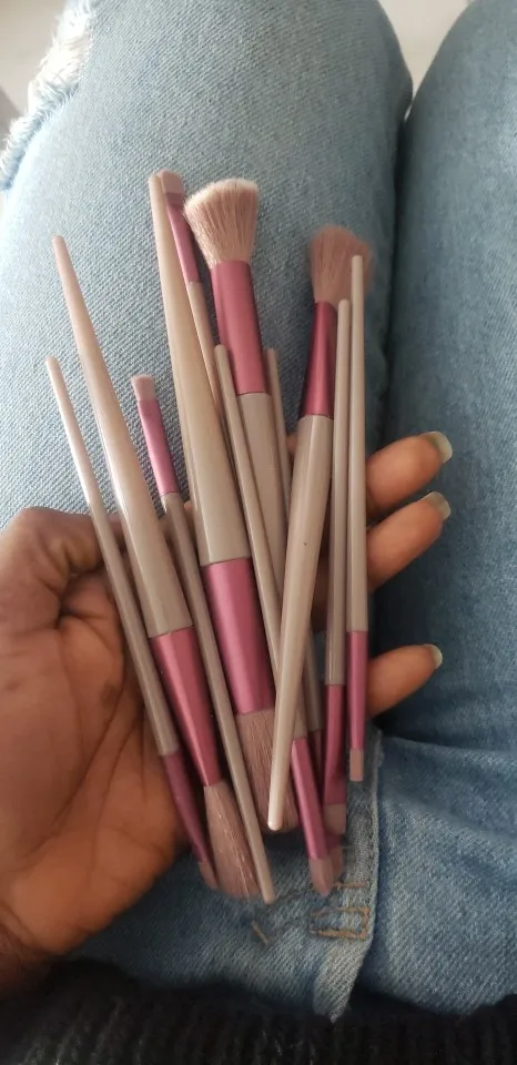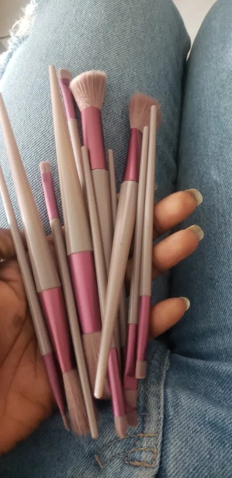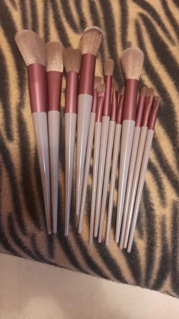 Покупка стоит того из-за идеального тонкого глаза и толстого осветителя, остальное очень хорошо, и я не поклонник тонких кистей для пудры, румян и контуров. На изображении они выглядят довольно толстыми, но это не так, эта белая щетина совсем не такая. Качество не лучшее, но по цене, которую я заплатил ($8,00), это даже хорошо.