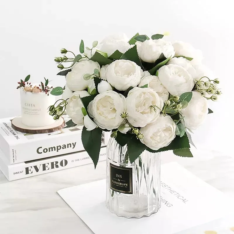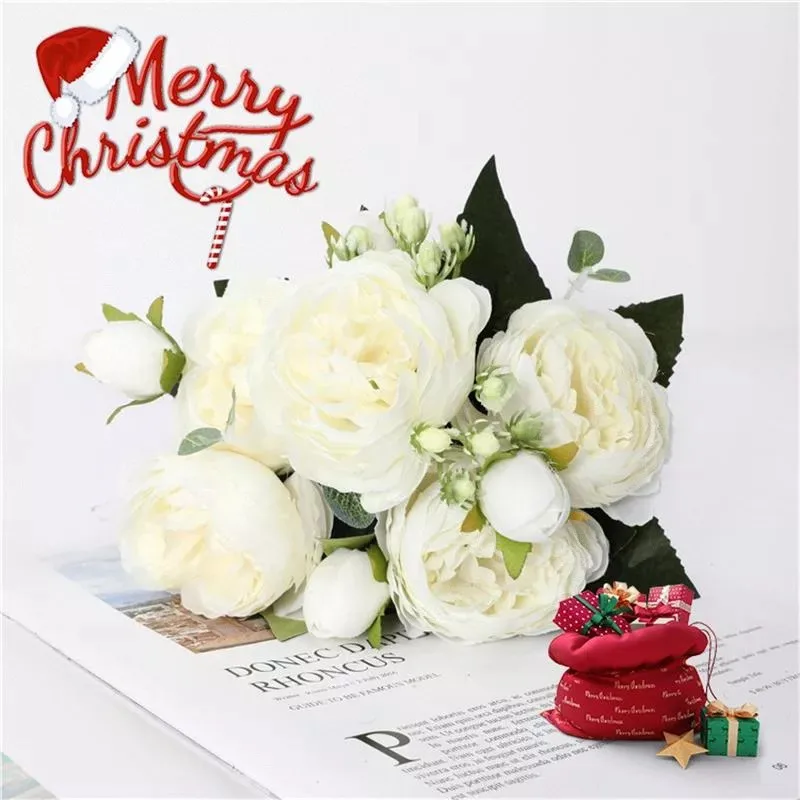 30 см Розовый Белый Пион Искусственные цветы букет 5 большая голова и 4 бутона дешевые искусственные цветы для дома Свадебные украшения в пом...