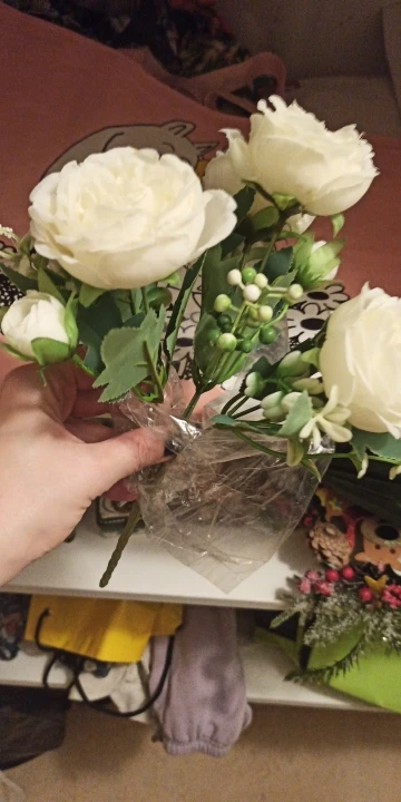 Они очень красивые, это второй раз, когда я спрашиваю, но, к сожалению, ветка оказалась окрашенной в какой-то коричневый цвет или белые лепестки, и это выглядит очень некрасиво. Фотографии, где это ценится. Они не должны посылать это так: грязно.