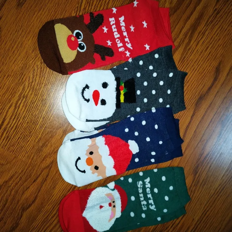 4 пары осенне-зимних рождественских носков прямые носки-башмачки с изображением Санта-Клауса из пряжи и перьев короткие красные носки