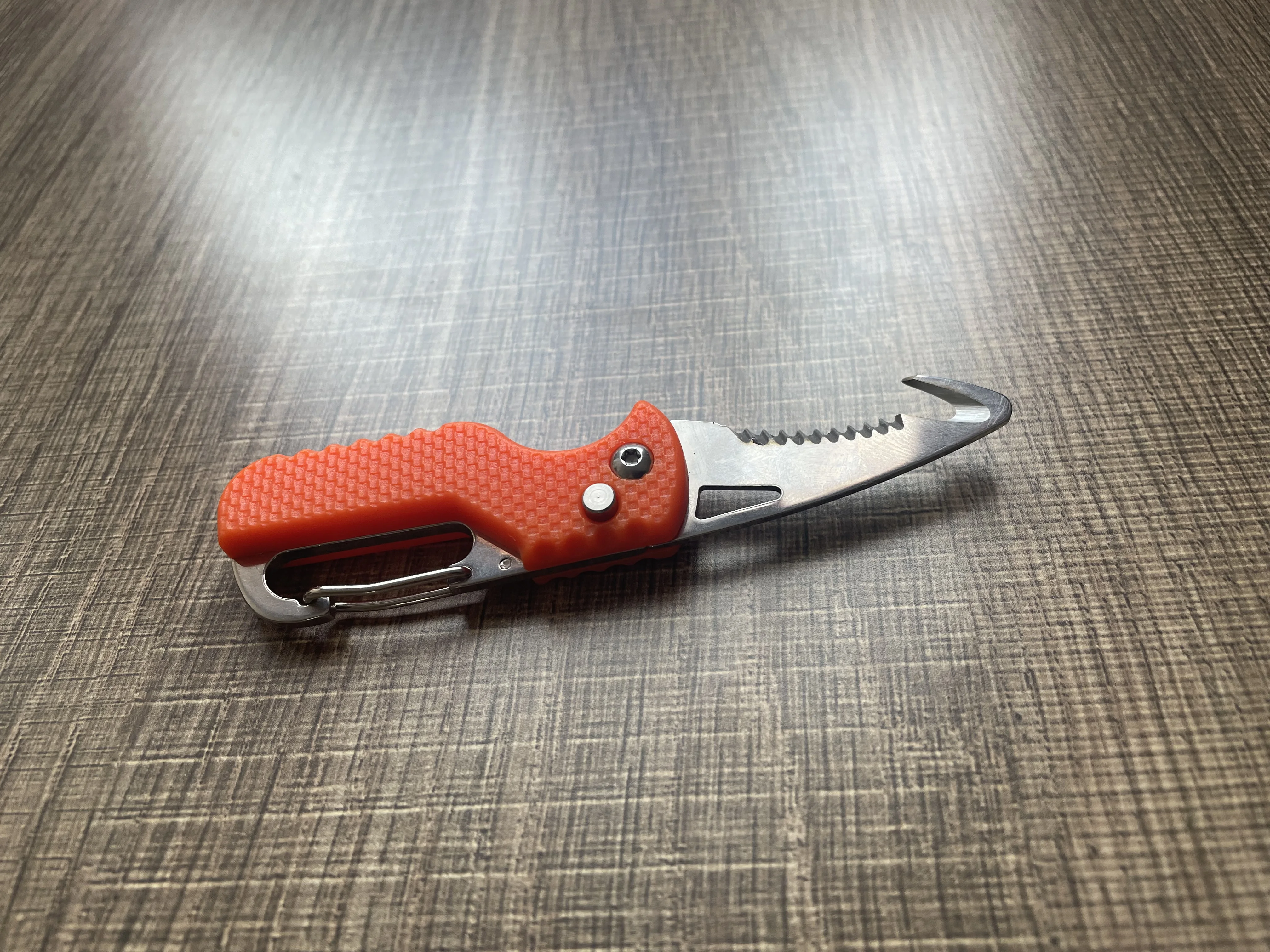 Удивительный маленький инструмент. Особенно полезен острый крючок на конце. Серированное лезвие слишком короткое, чтобы разрезать что-либо существенное, но очень острое, чтобы это можно было сделать.