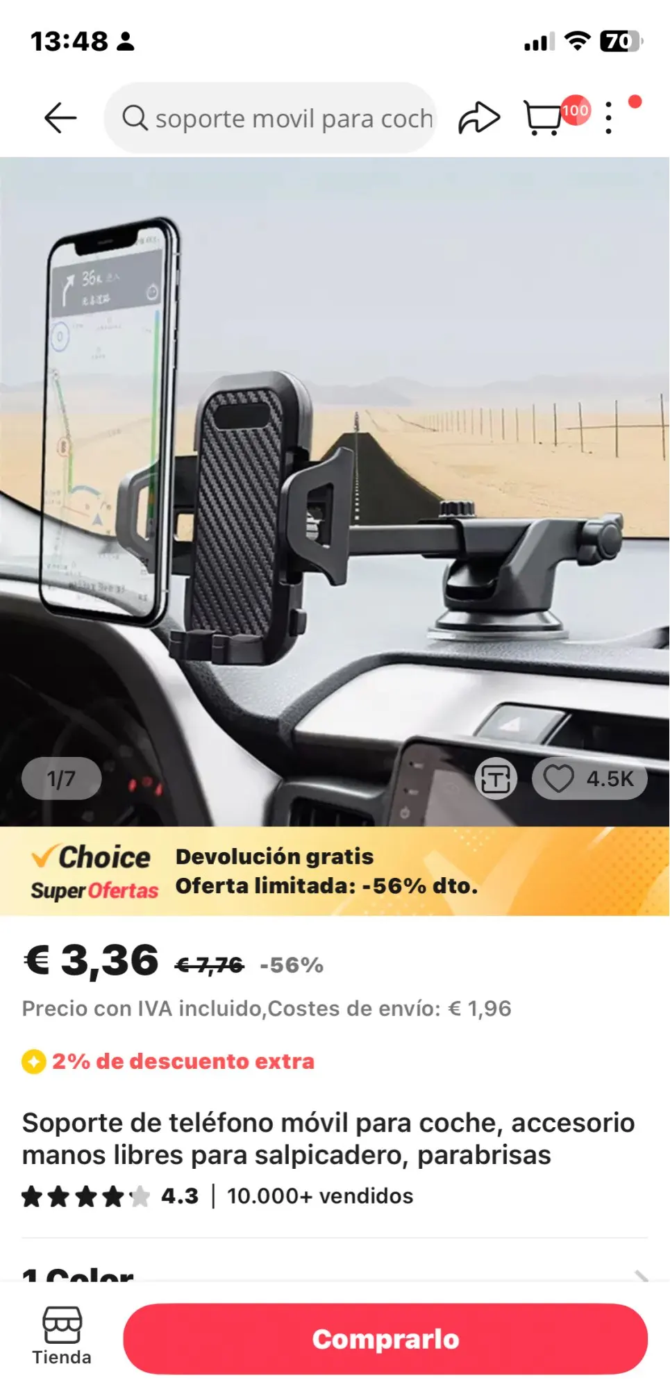 Хорошо упаковано, доставлено очень быстро, менее чем за 10 дней. Жаль, что присоска в комплект не входит. Это для крепления к элементам вентиляции. Должно было быть слишком плохо с присоской.