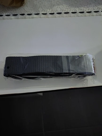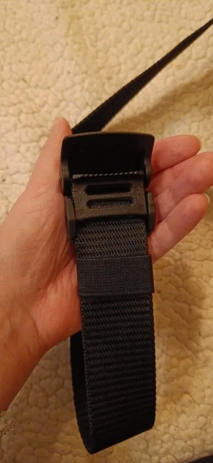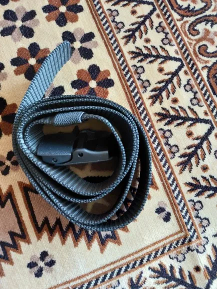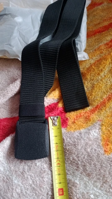 Простий, звичайний ремінь. Синтетичний матеріал, пластикова пряжка, скільки часу буде ціла, невідомо. Досить довгий 120 см до пряжки. Кінчик ременя зарізаний, для більш зручного використання. Купувала за 2 евро, більших грошей не вартий. Посилка до Італії йшла місяць. Час зупинити російську агресію! russia is terrorist state
