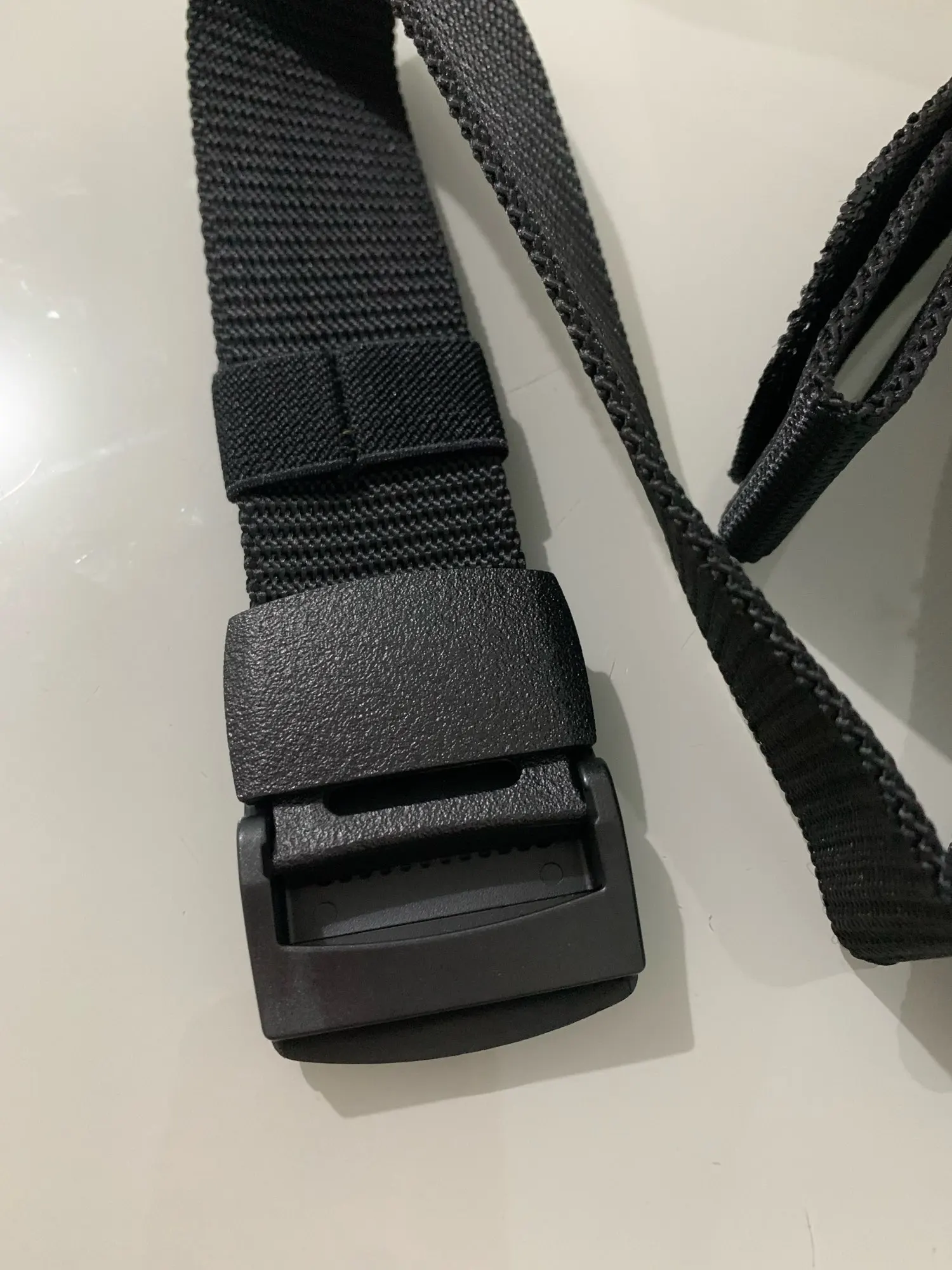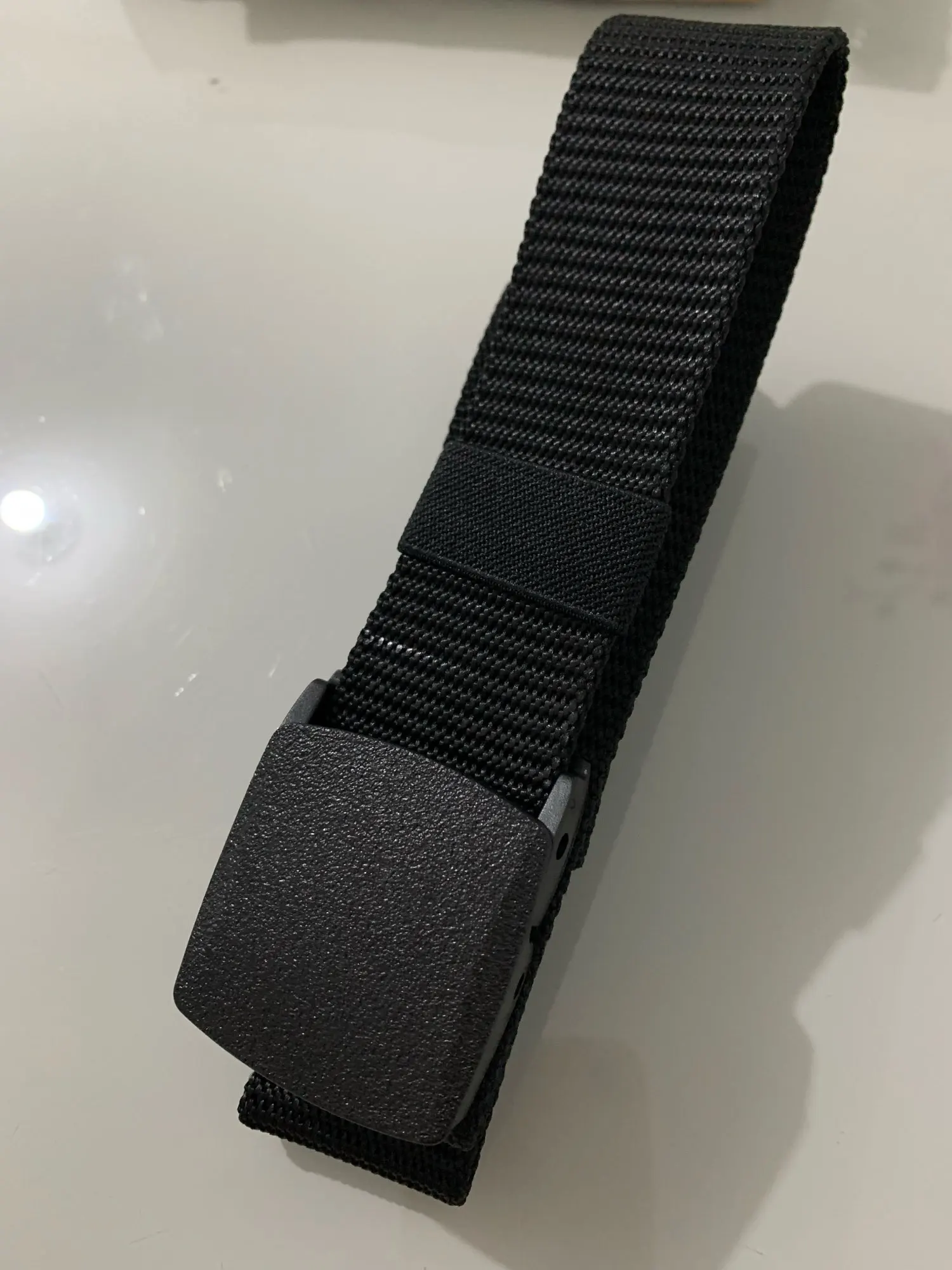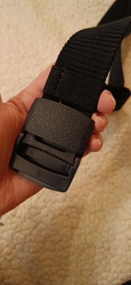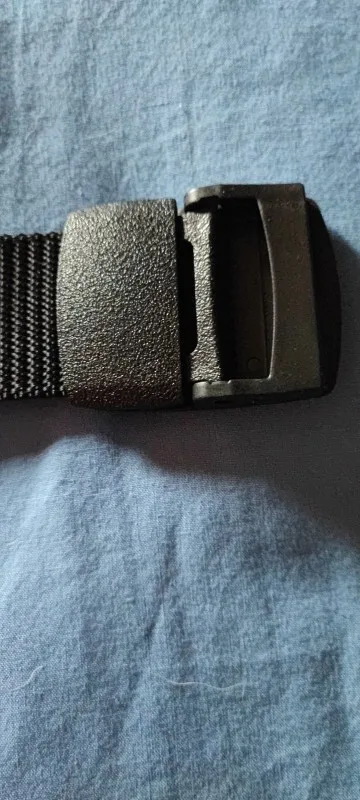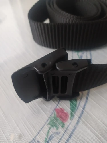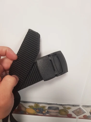 Очень практичный ремень, который предотвращает его удаление при прохождении через защитные кольца аэропортов или общественных или частных мест, пряжка изготовлена из твердого пластика вместо крышки, она должна быть проверена и посмотреть, как долго она длится.