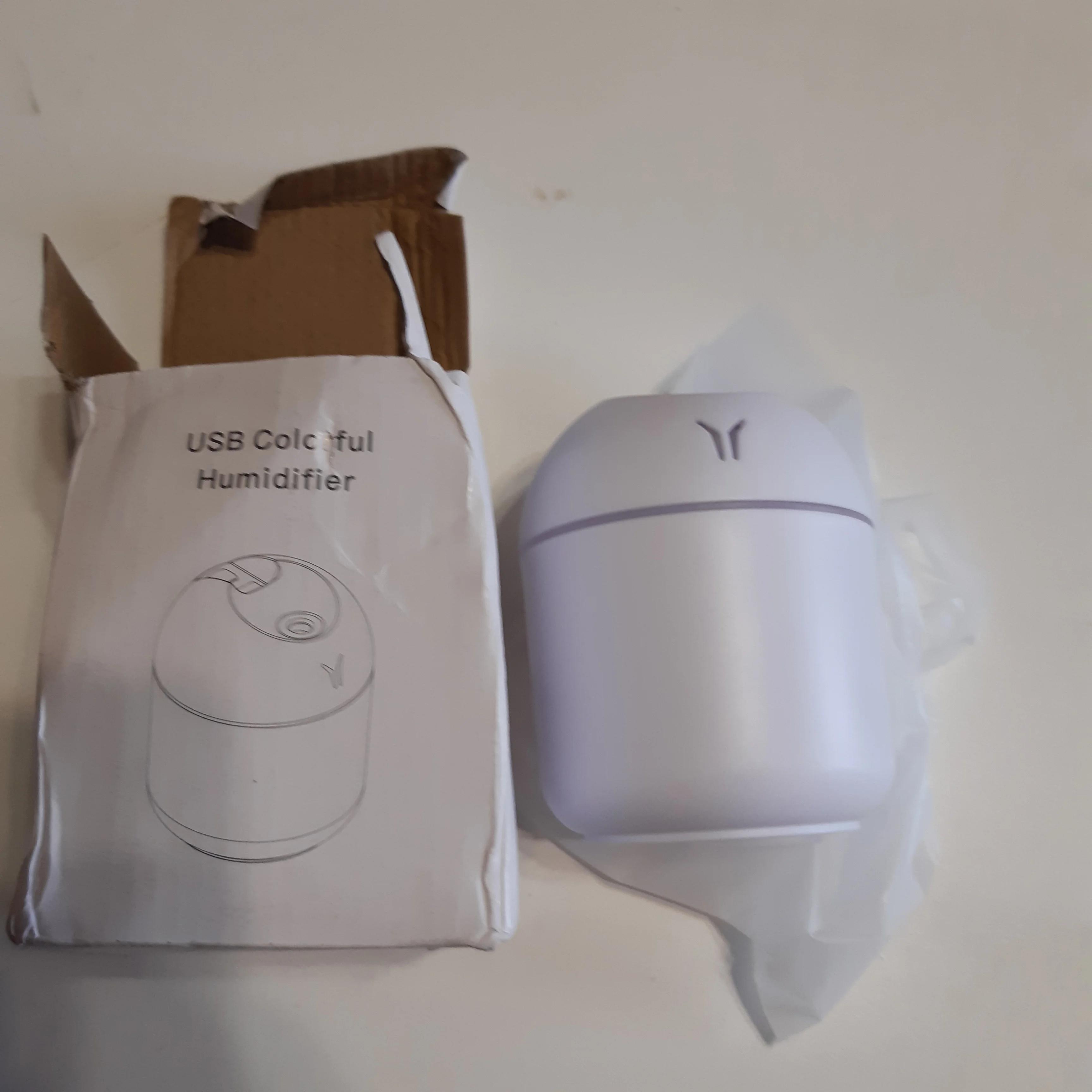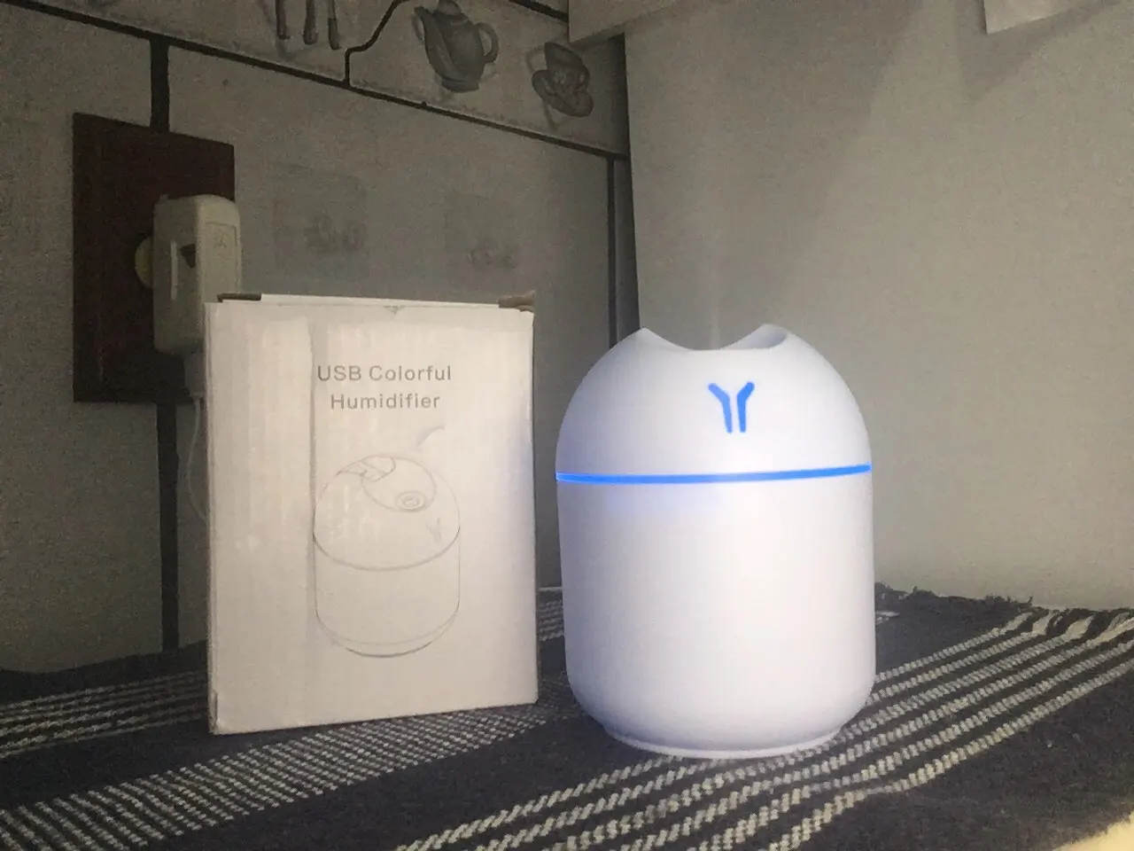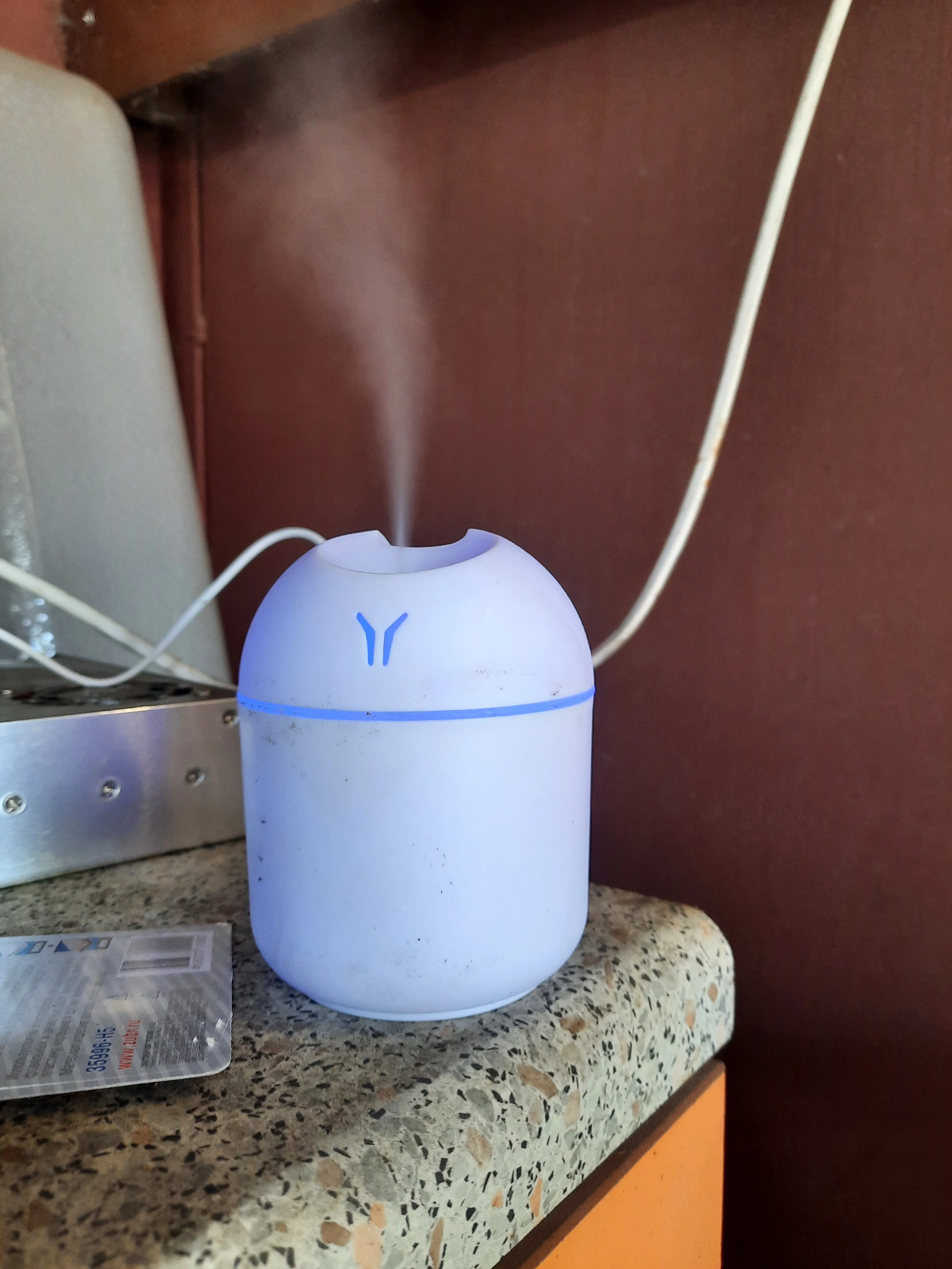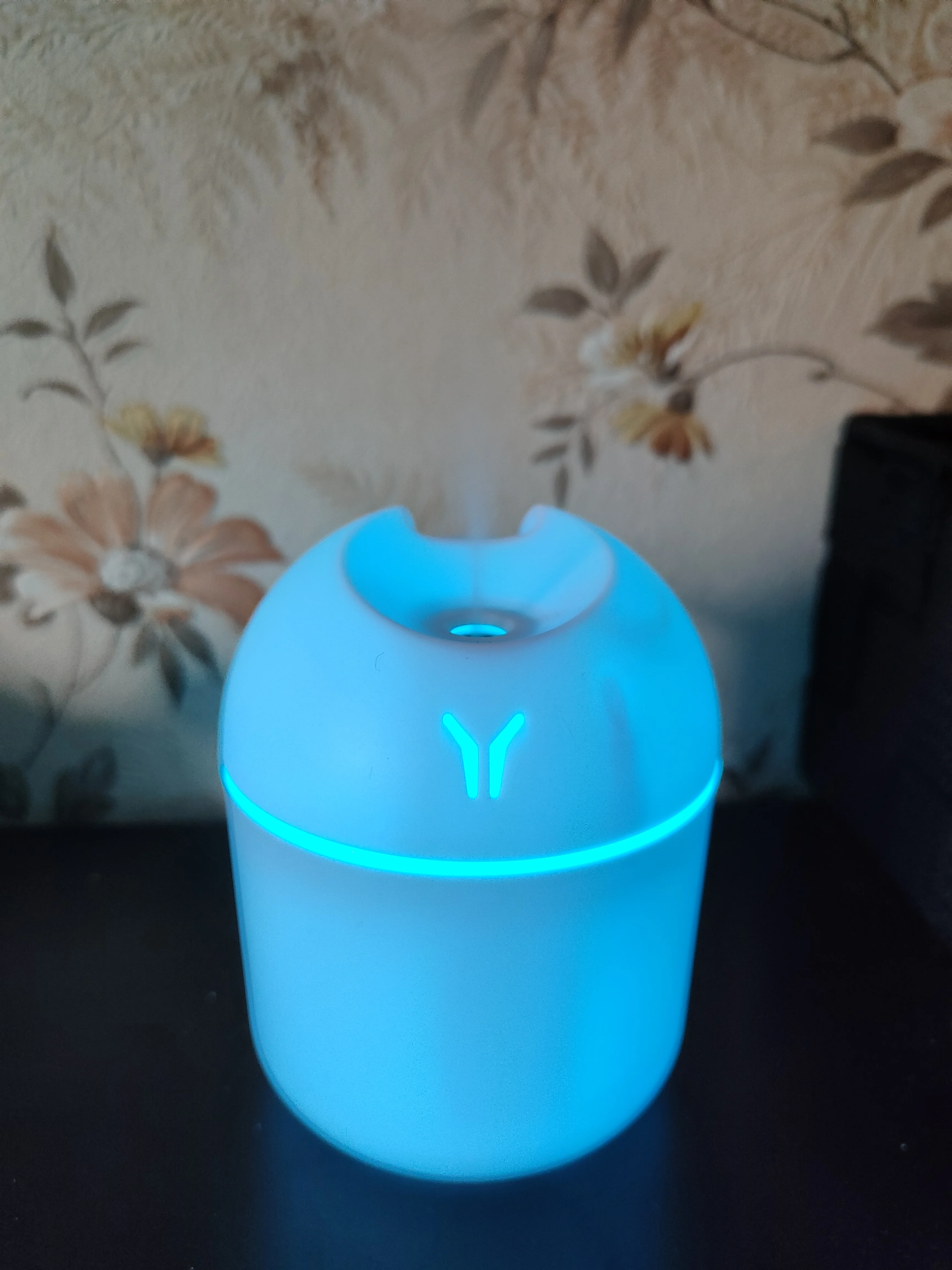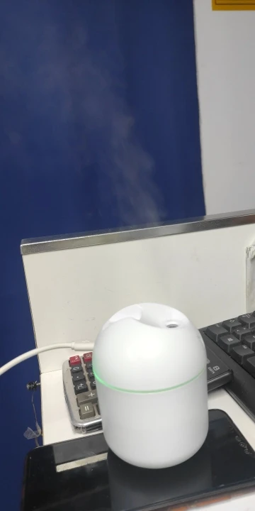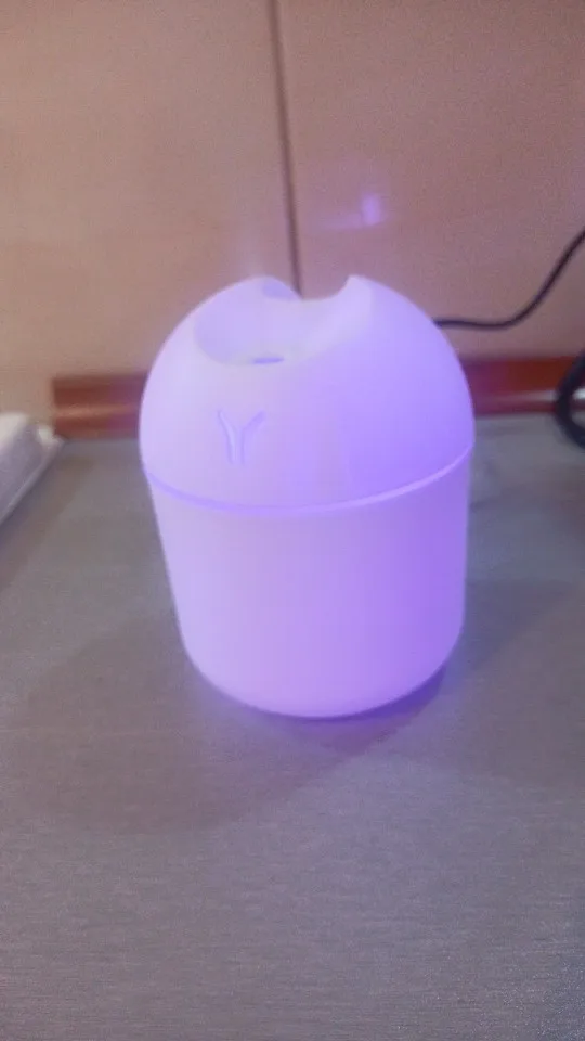 Увлажнитель работает исправно, но на корпусе есть небольшая вмятина. Цвет меняетр, сила пара отличная. Для маленькой комнаты очень подходит.