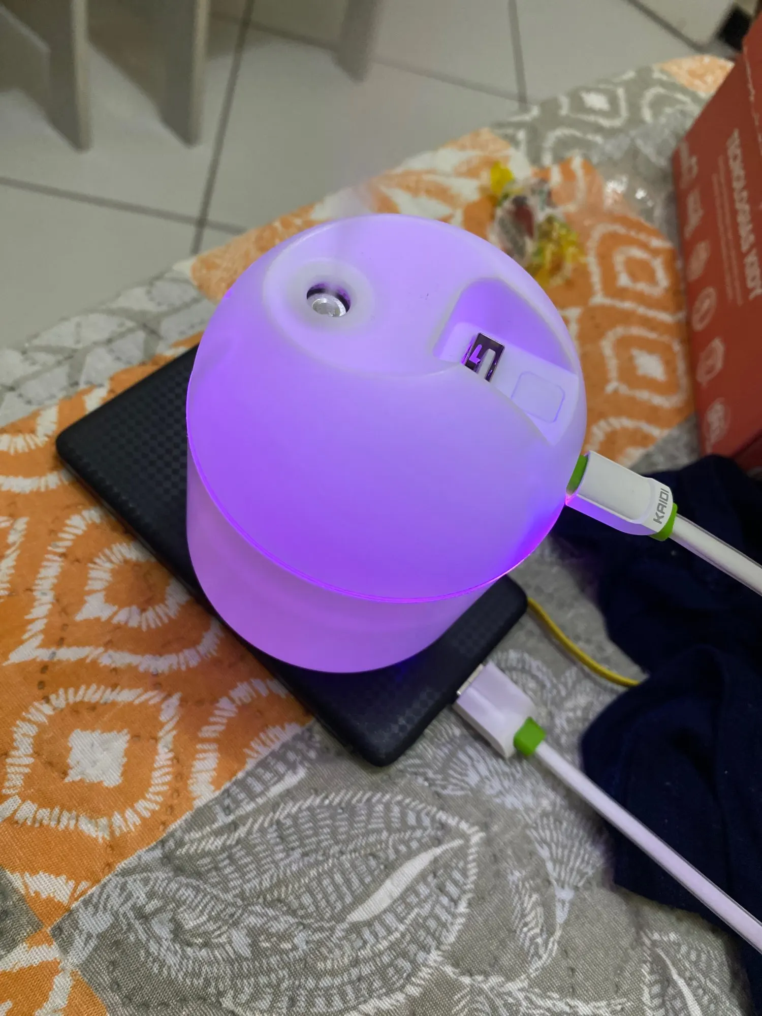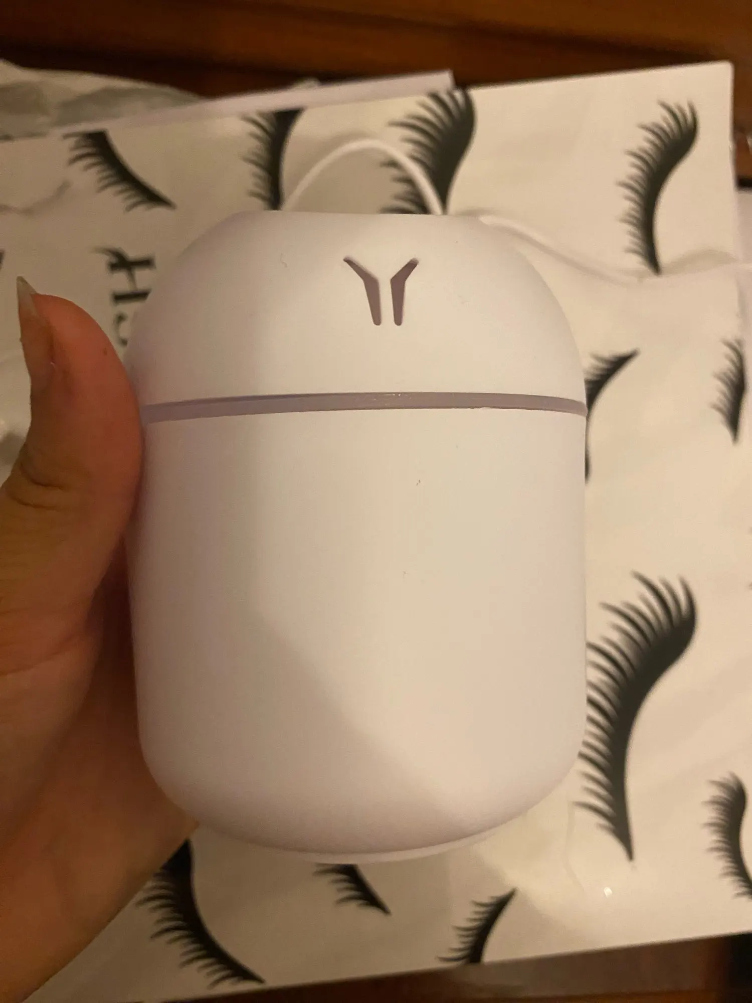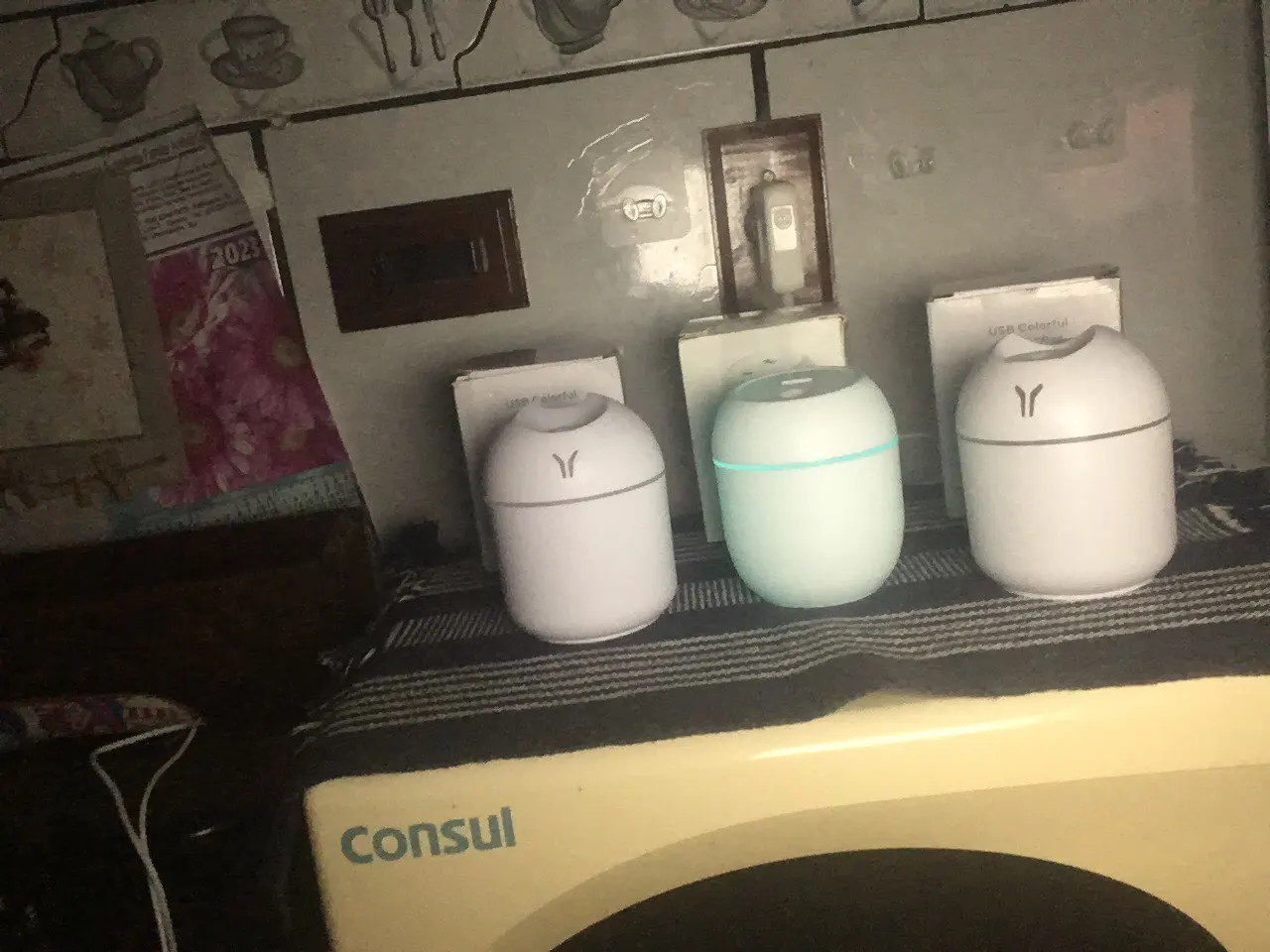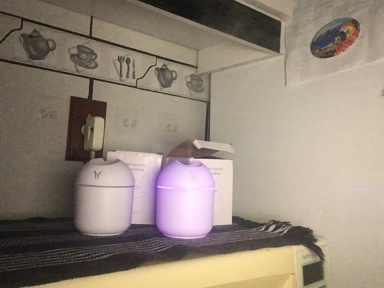 Увлажнитель работает исправно, но на корпусе есть небольшая вмятина. Цвет меняетр, сила пара отличная. Для маленькой комнаты очень подходит.