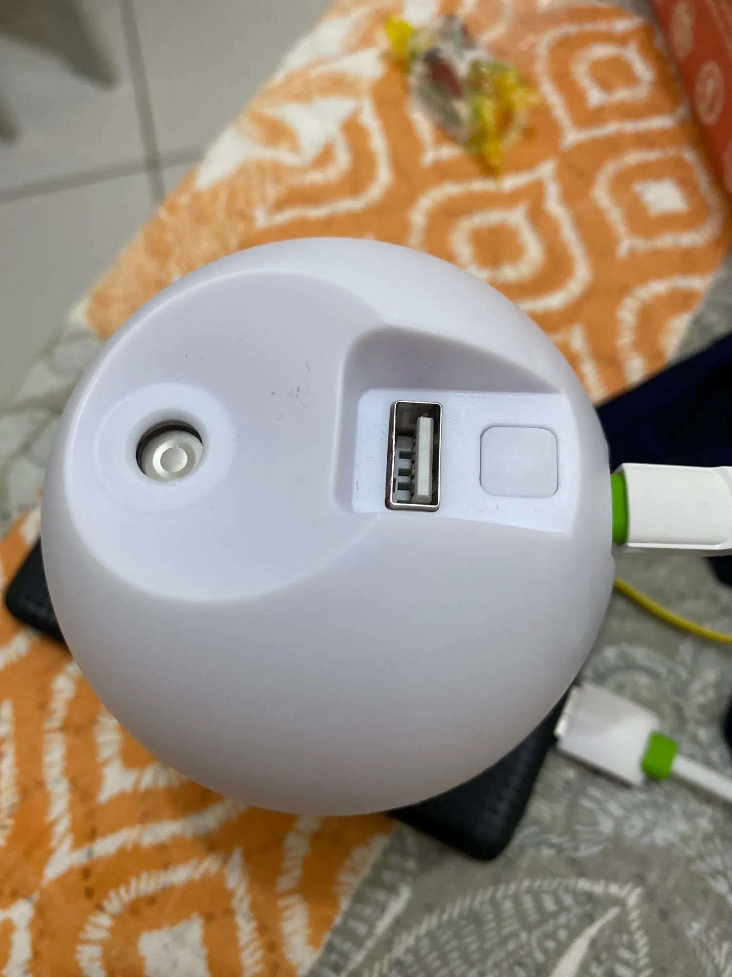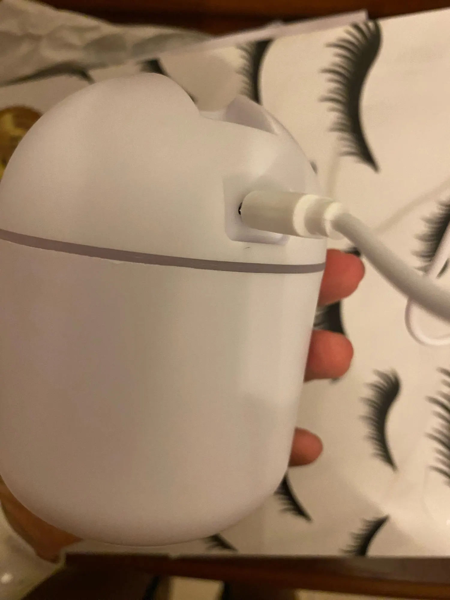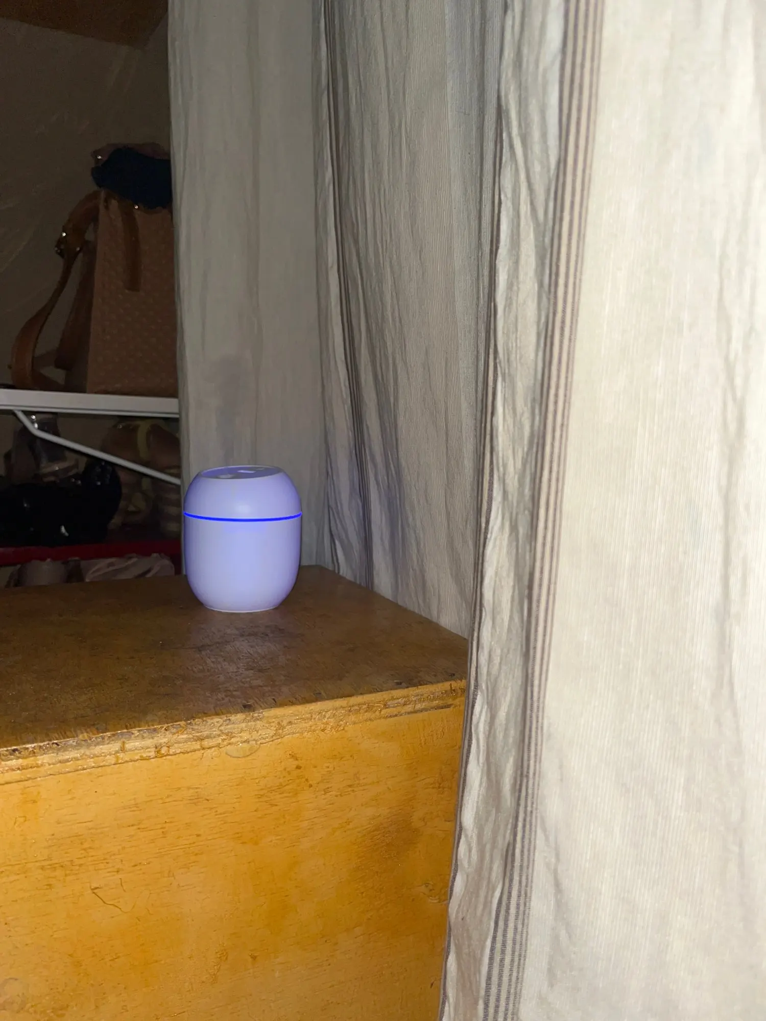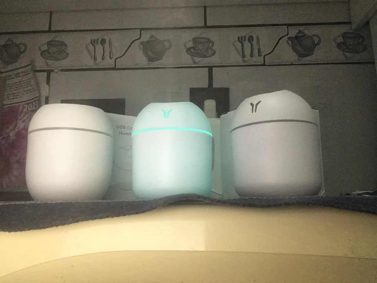 Увлажнитель работает исправно, но на корпусе есть небольшая вмятина. Цвет меняетр, сила пара отличная. Для маленькой комнаты очень подходит.