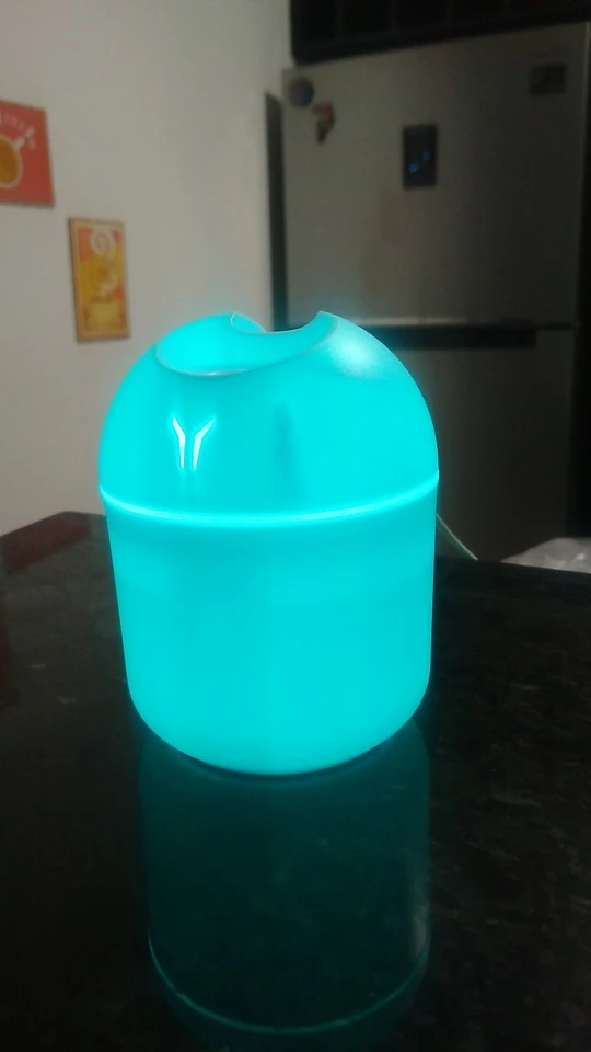 Очень хороший продукт, имеет два режима работы, а также возможность оставаться светящимся или выключенным. Только наблюдение, что со временем фильтр, который находится внутри, изнашивается, интересно уже покупать товар с дополнительными фильтрами. Мой продукт, по крайней мере, пришел с некоторыми пятнами, я не знаю, что, но ничего, что мешает вам. Не более, товар очень хороший