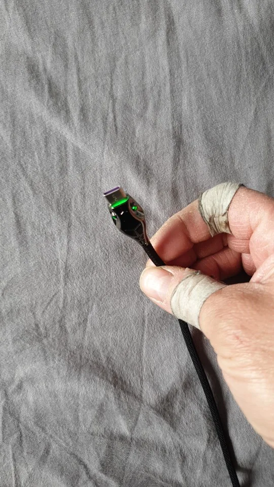 Нет, быстрая зарядка не работает... Просто медленная зарядка, кабель кажется качественным, но быстрой зарядки нет... Протестировано с 2 адаптерами 30 Вт, но медленная зарядка только на 2 устройствах. Хорошие светодиодные эффекты, но это все ..