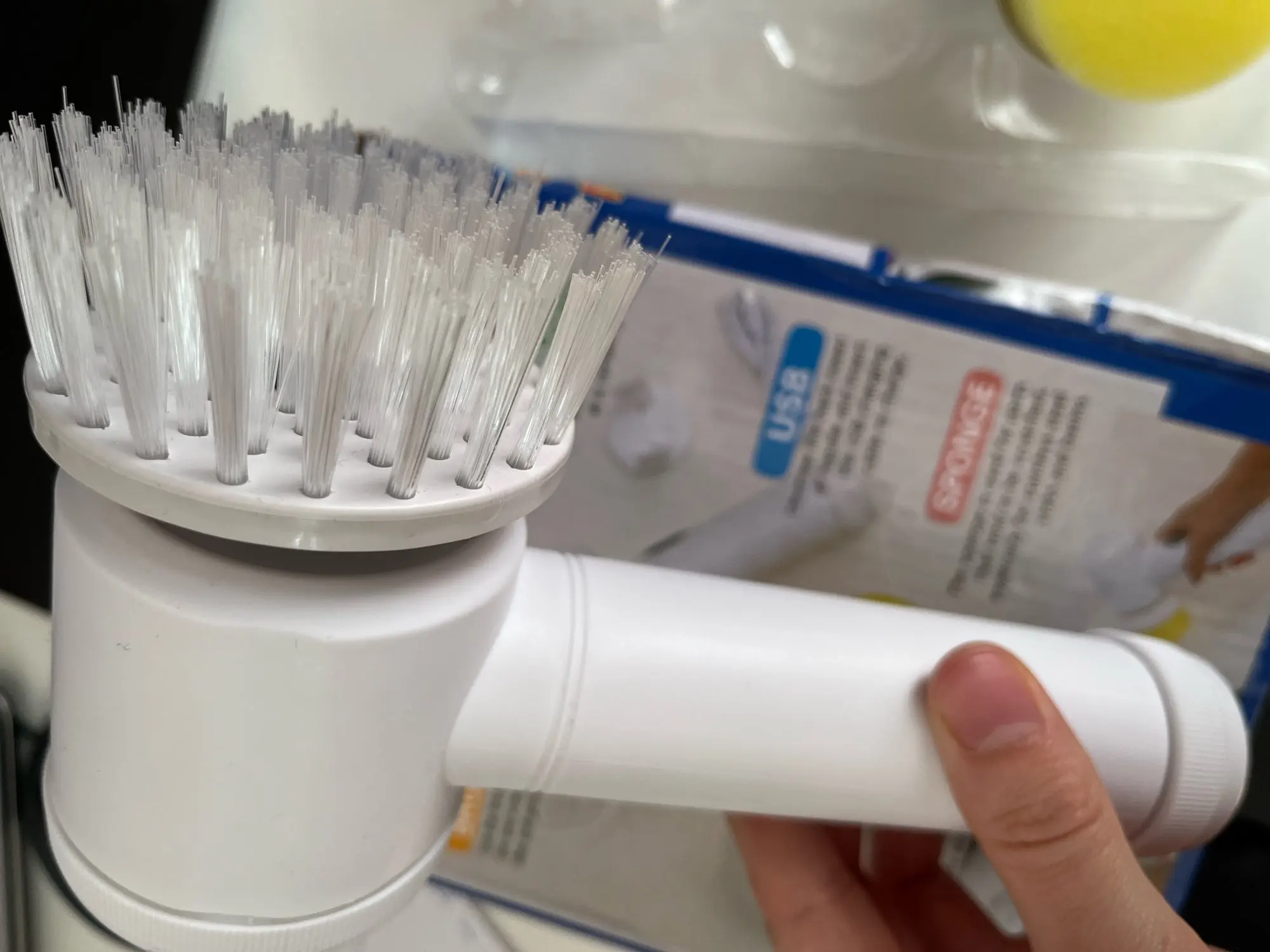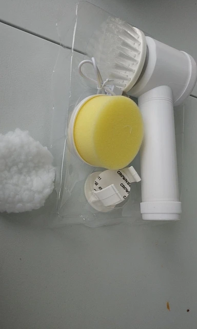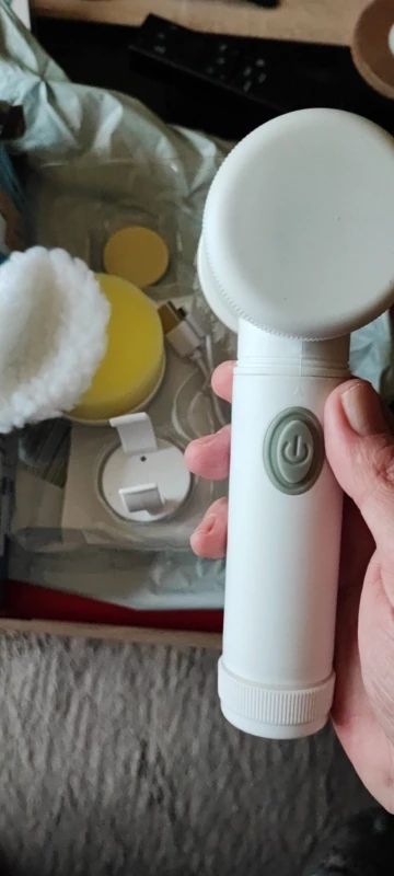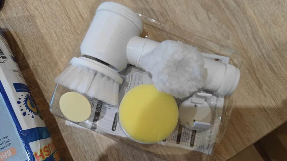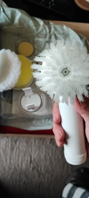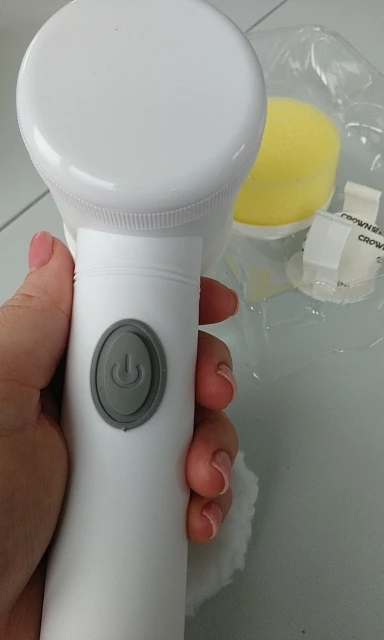 Как в описании. Он поставляется с предварительной зарядкой, с насадкой-щеткой, губчатой насадкой и колпачком из микрофибры (?), а также с крючком и зарядным кабелем. Он не очень мощный, но достаточно прочный, чтобы тщательно мыть занавеску для душа, а также плитку под душем. Хорошие моющие средства являются обязательными. Мне удалось очистить грязные пятна рядом со стоками, и уборка была удовольствием. Смазка для локтя больше не требуется;)