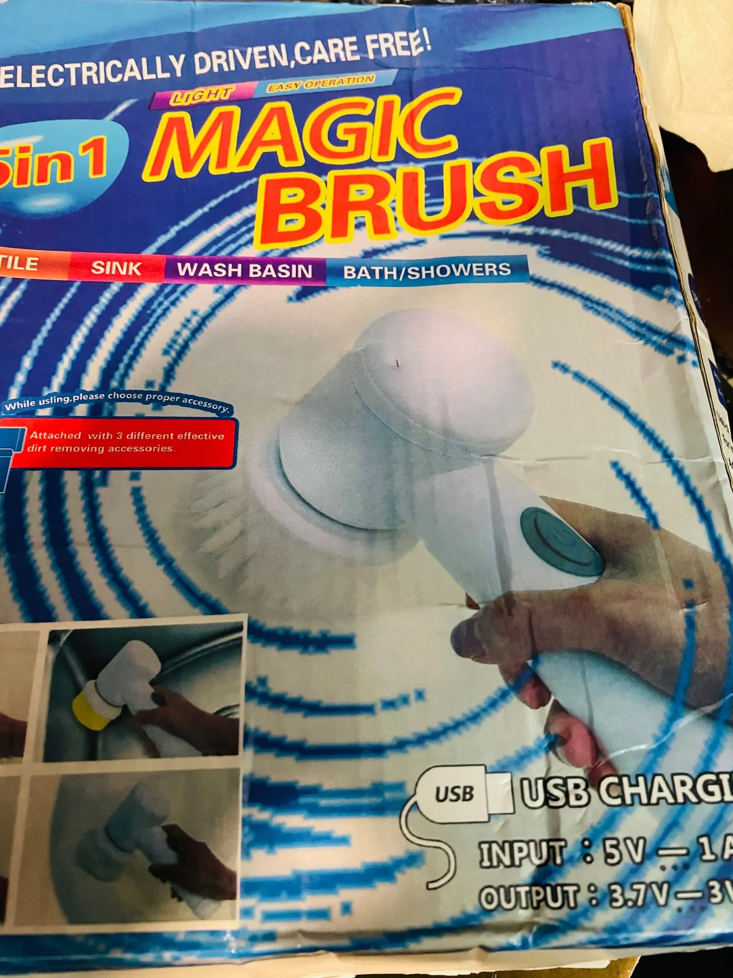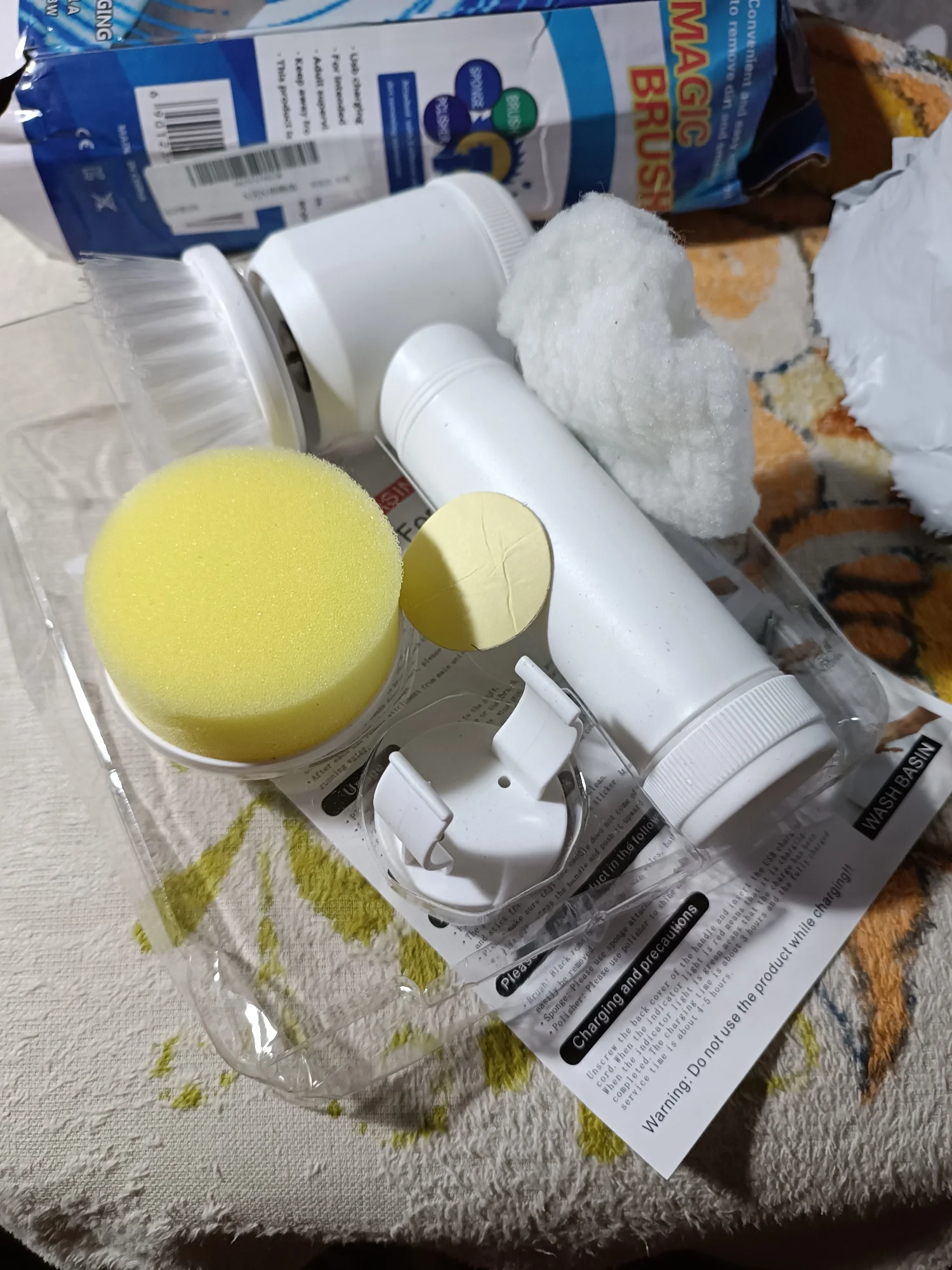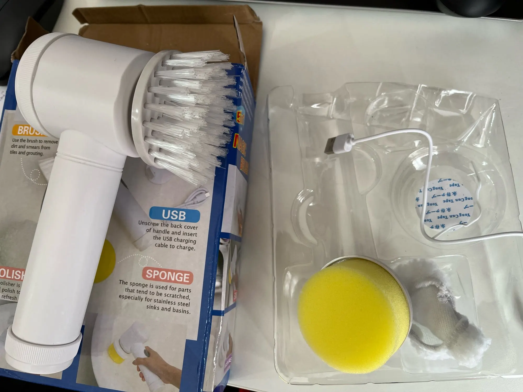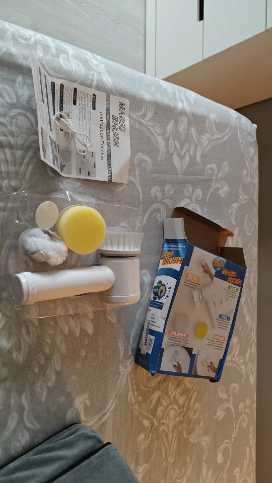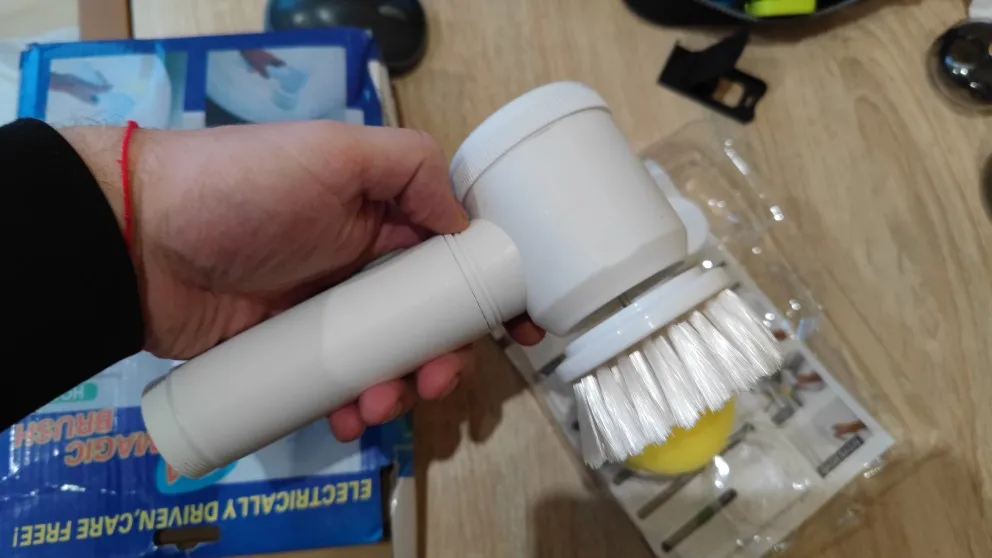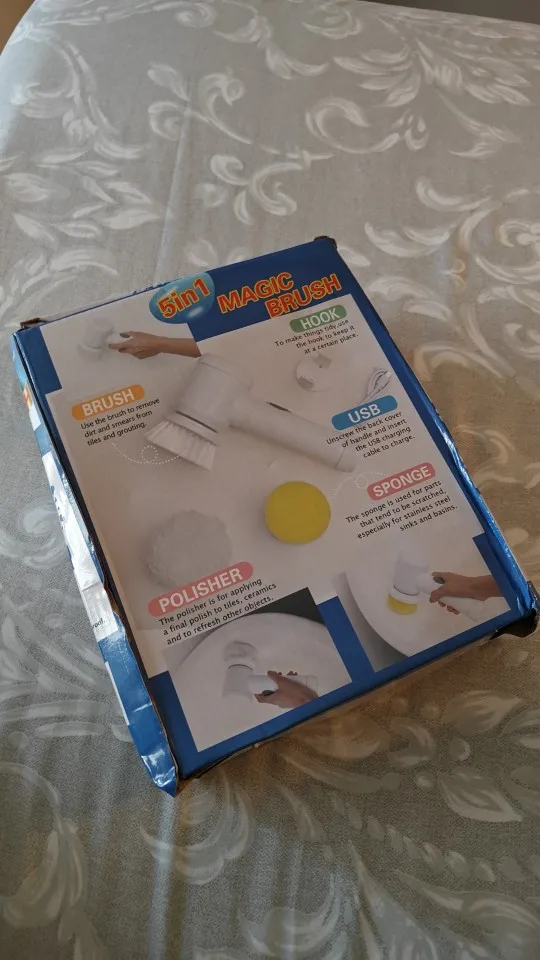Здравствуйте, электрическая щетка прибыла, чтобы поцарапать или чистить поверхности... Коробка была помята, но интерьер не поврежден... Продукт в порядке, он чувствует себя комфортно в руке и не весит, поэтому я попробовал отверстия для вращающейся головы приличные, а другие делают свою работу все стоит... батарея перезаряжаемая и некрасивая кисть и губка. Чтобы увидеть со временем, как это работает. Спасибо Aliexpress и продавцу