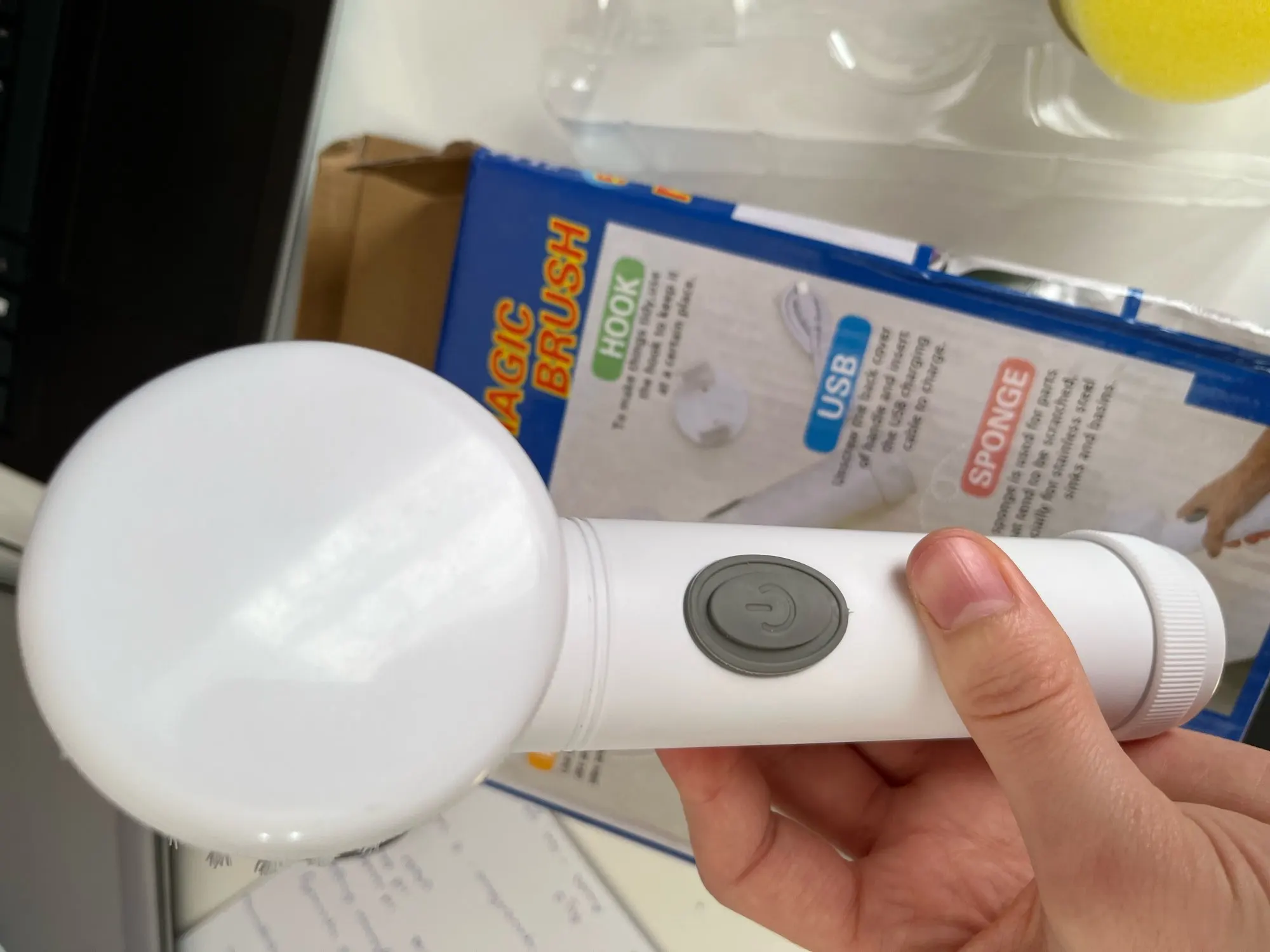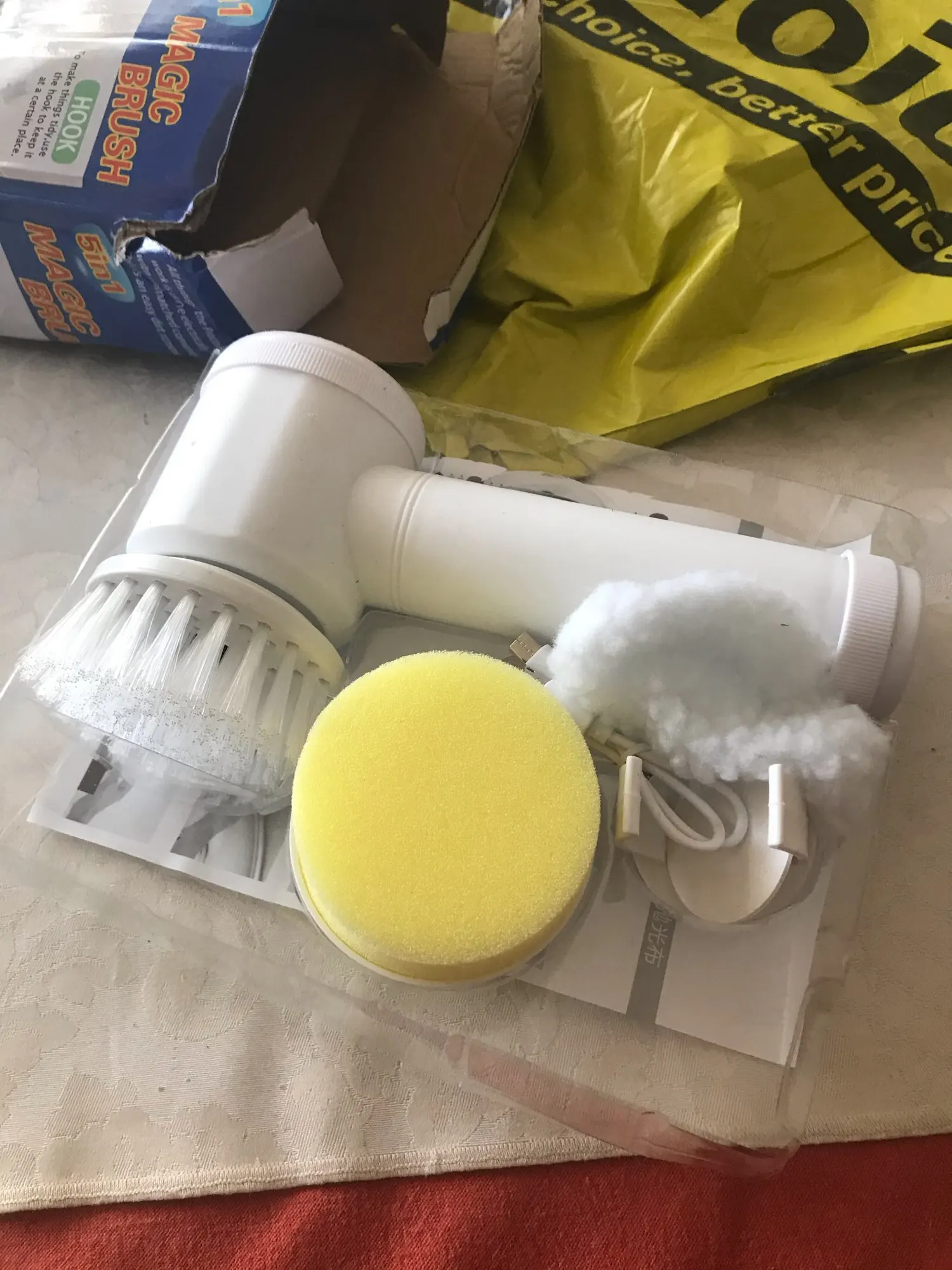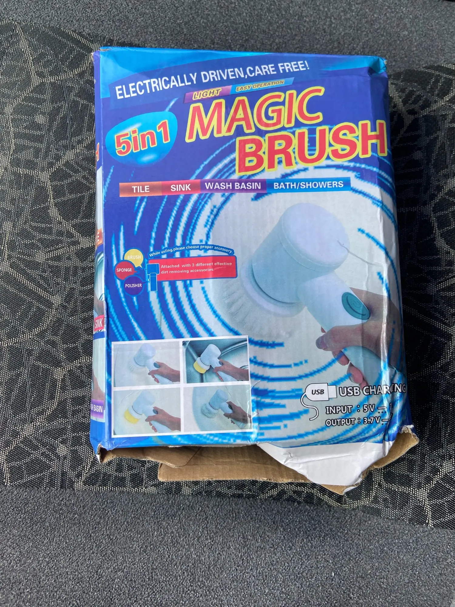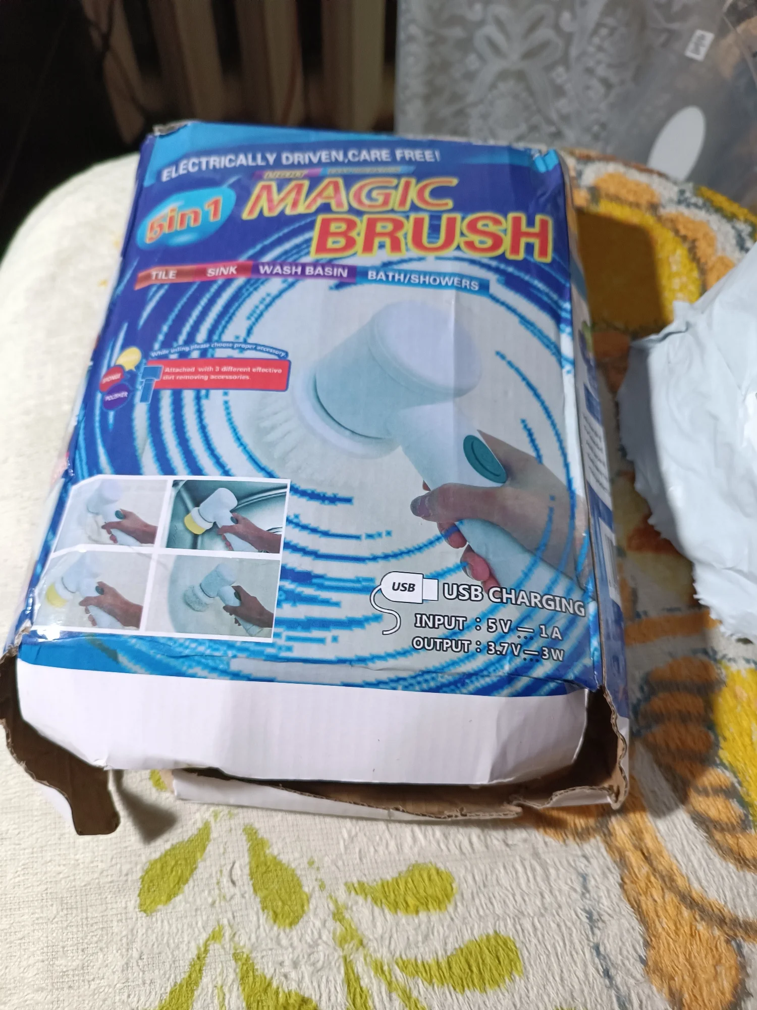 Здравствуйте, электрическая щетка прибыла, чтобы поцарапать или чистить поверхности... Коробка была помята, но интерьер не поврежден... Продукт в порядке, он чувствует себя комфортно в руке и не весит, поэтому я попробовал отверстия для вращающейся головы приличные, а другие делают свою работу все стоит... батарея перезаряжаемая и некрасивая кисть и губка. Чтобы увидеть со временем, как это работает. Спасибо Aliexpress и продавцу
