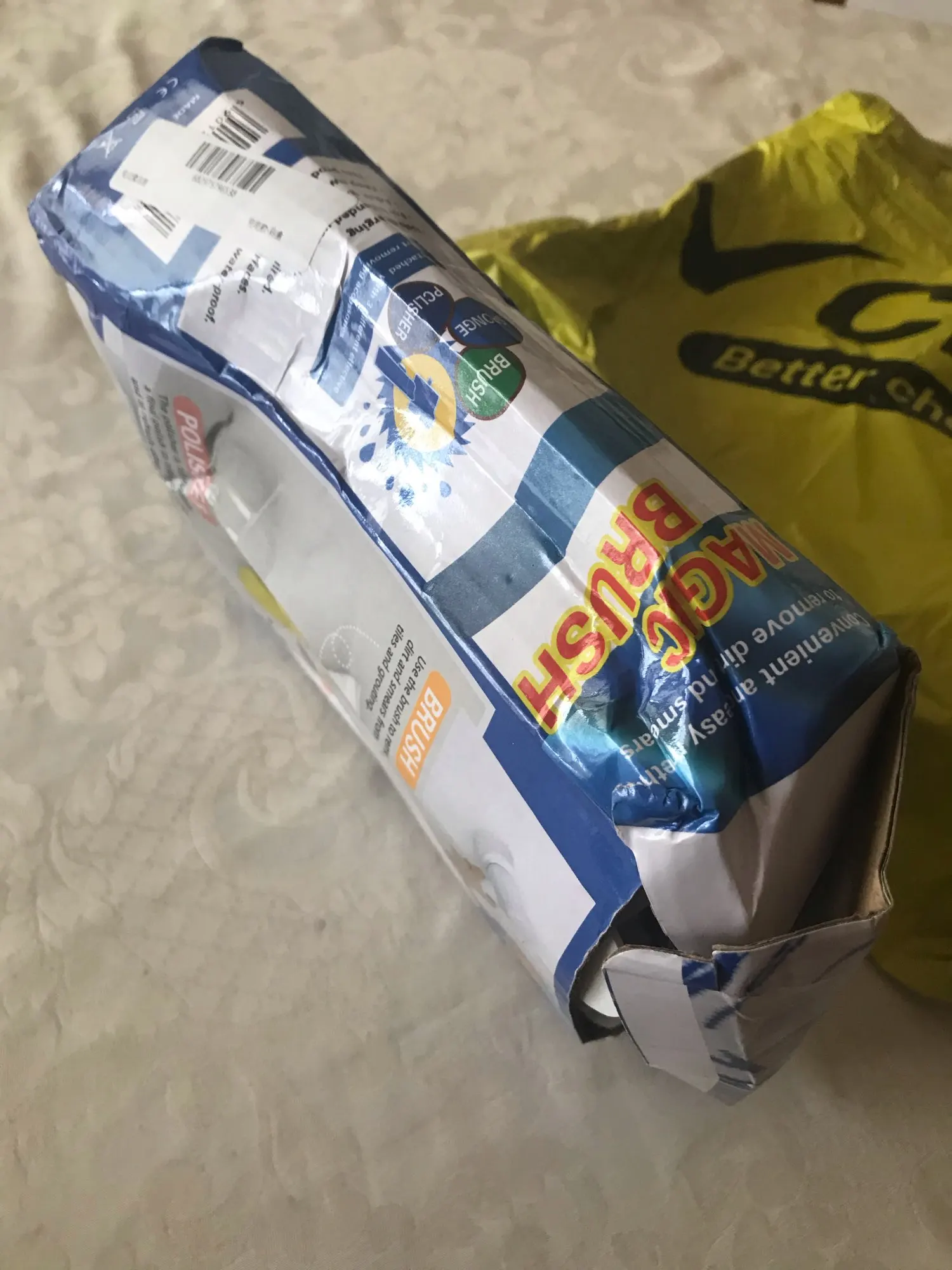 Пакет быстрой доставки полностью вмят на щетке, щетина согнута.
