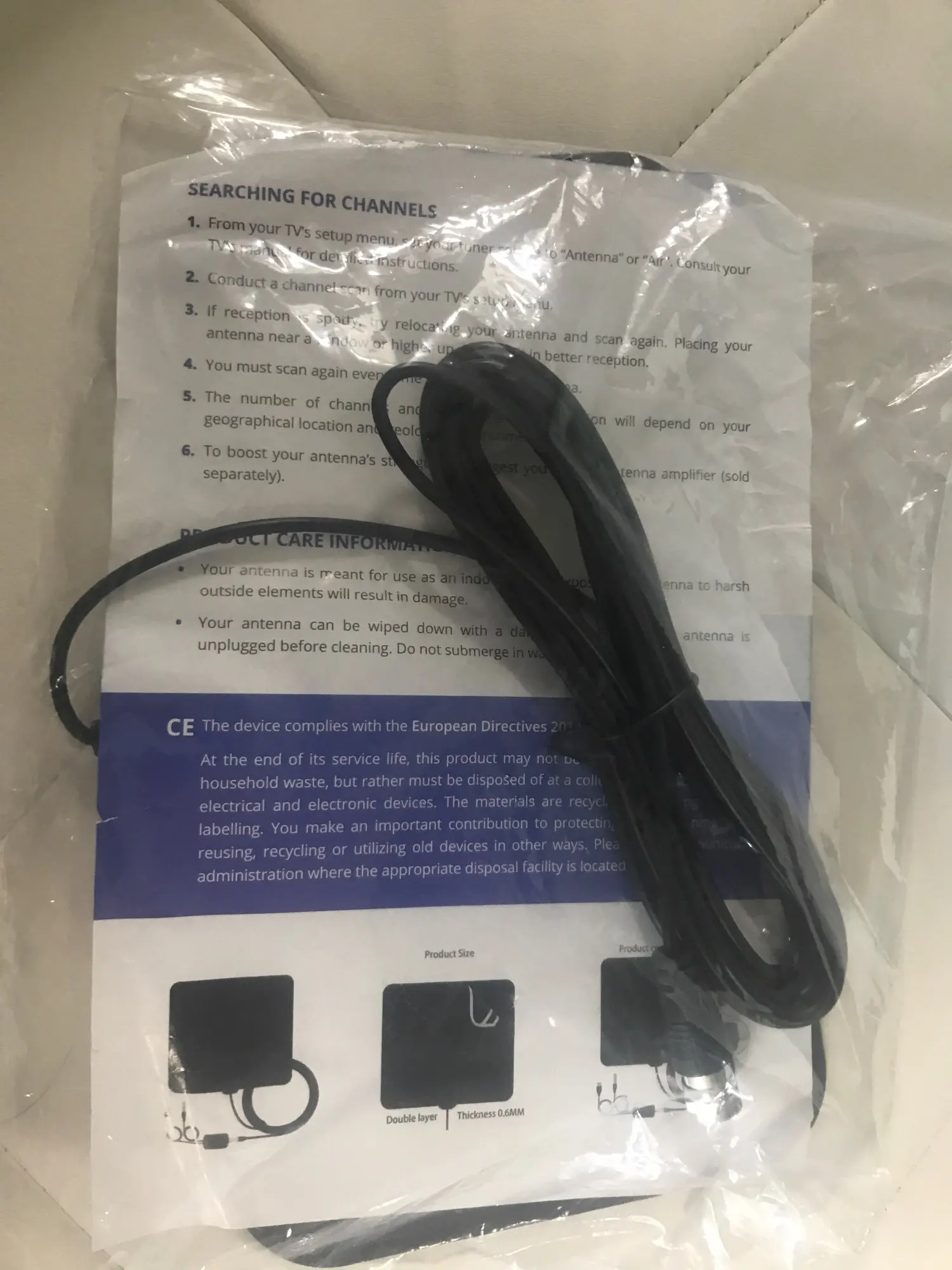 Правда пришла ко мне домой очень быстро, и я думал, что это займет немного больше времени, через 4 дня он пришел ко мне, как на картинке, он полностью плоский и приносит, чтобы приклеить его к вашей стене, я бы порекомендовал поставить его в высоком месте. И что у меня нет лучшего nd, чтобы сигнал не был прерывистым, я купил его для Smart TV, так как это коаксиальный кабель, и у него есть дополнительный адаптер