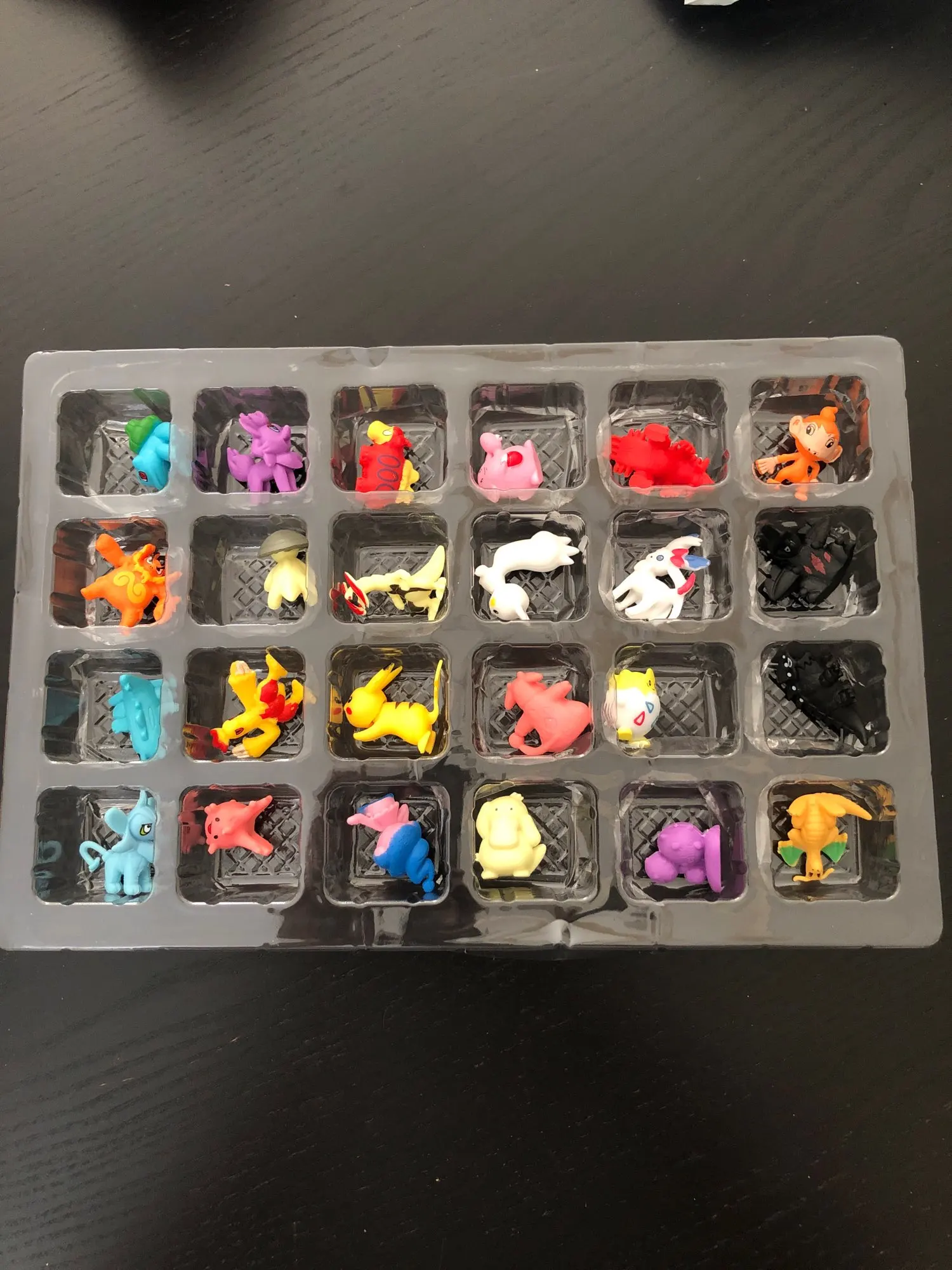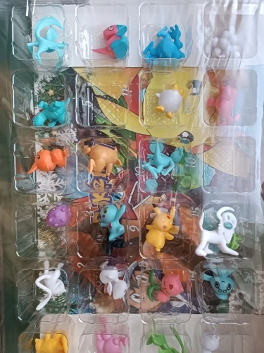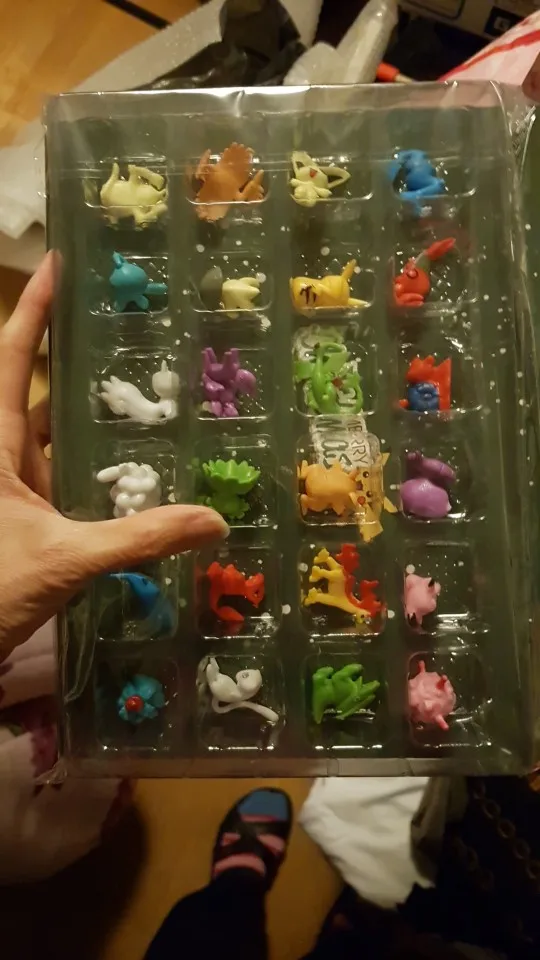 Они потрясающие, маленькие, поэтому я думаю, что это на 3 года, супер быстрая доставка менее чем за 10 дней. Он поставляется очень хорошо упакованным, и так как коробка складывается с одной стороны, а Покемоны с другой вы можете увидеть их, ни один из них не повторяется, они будут кривыми.