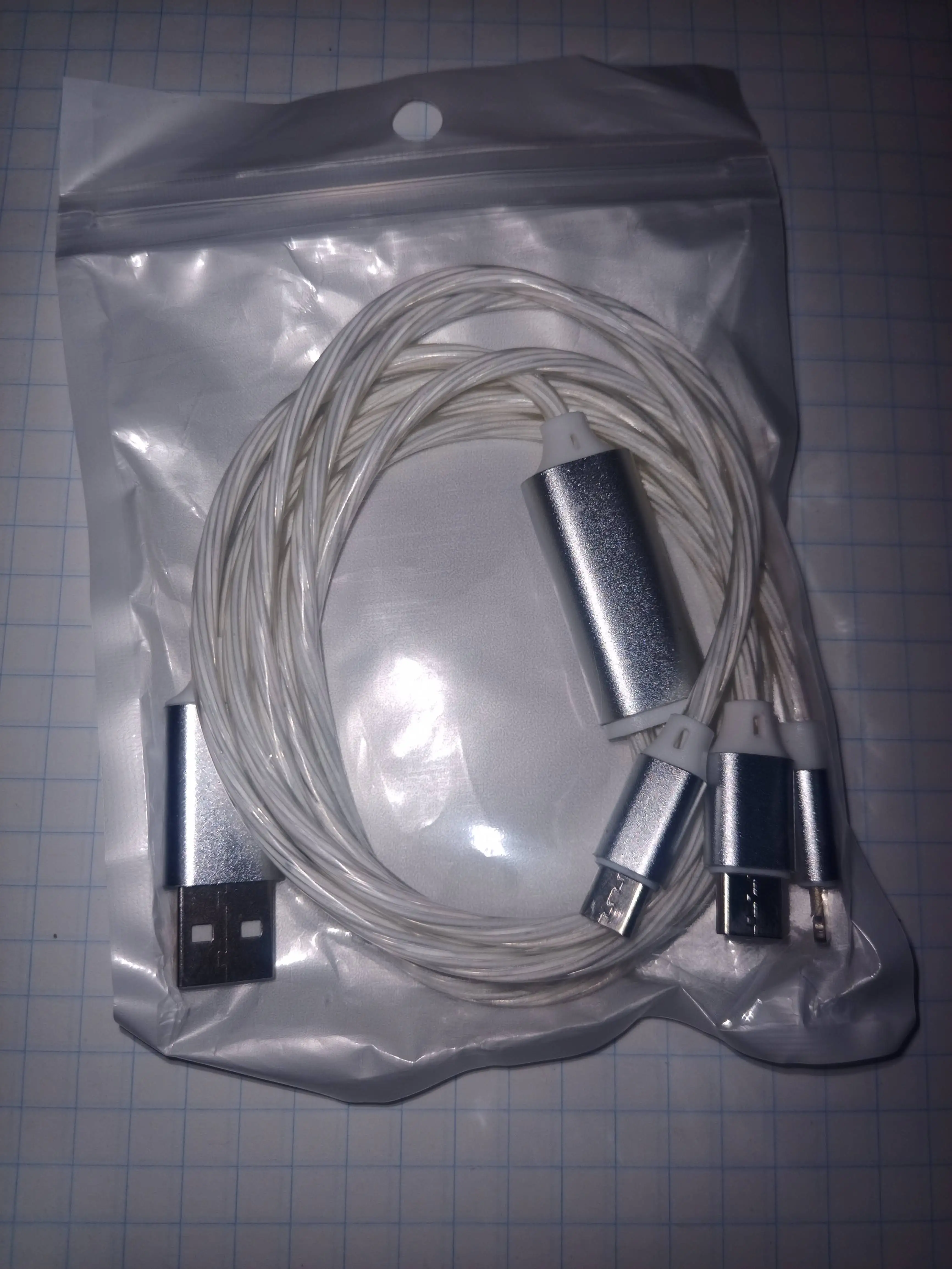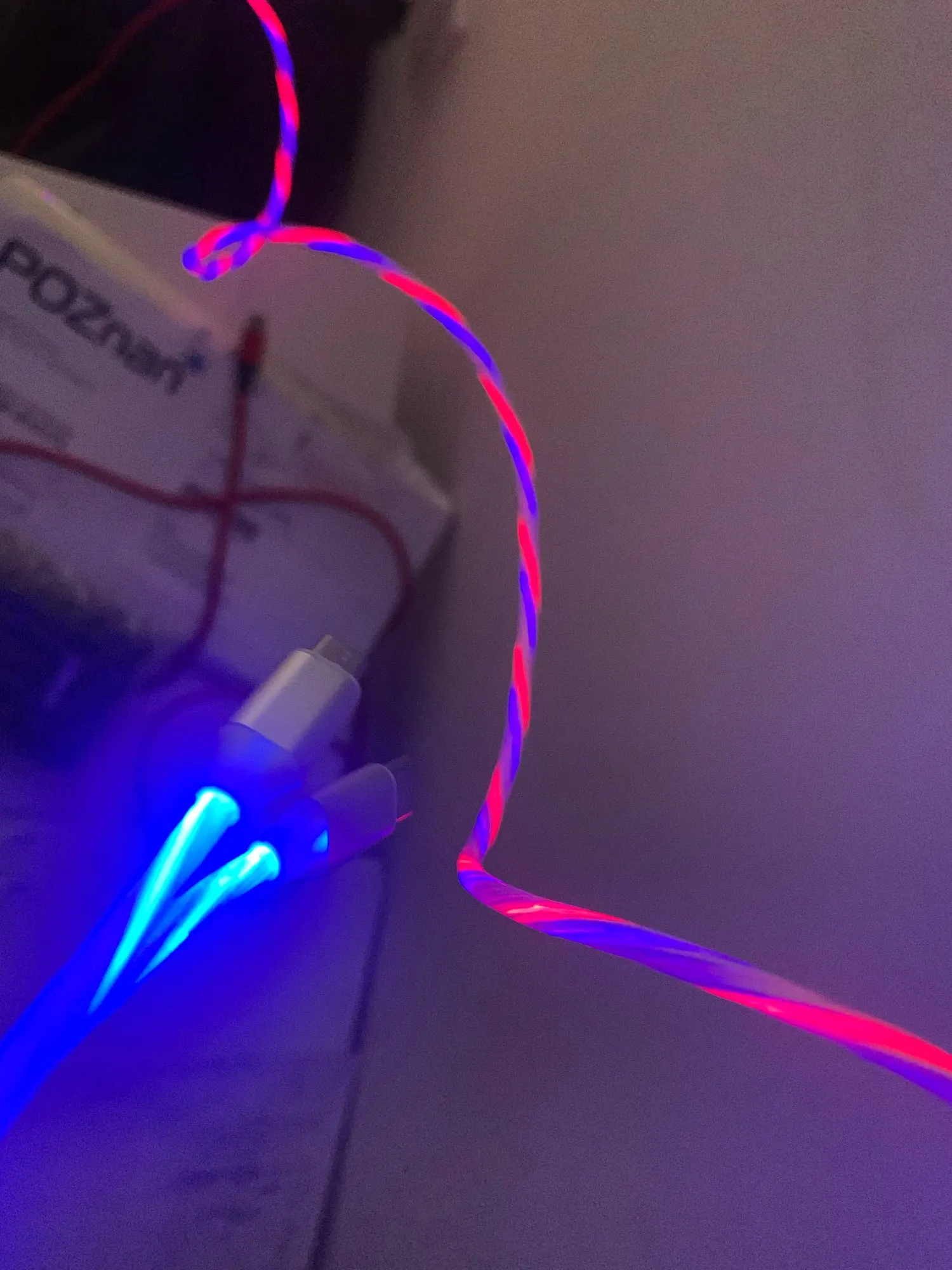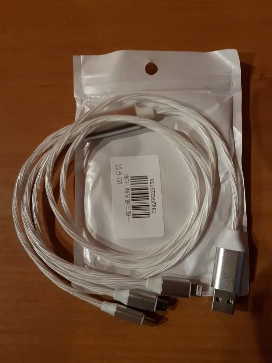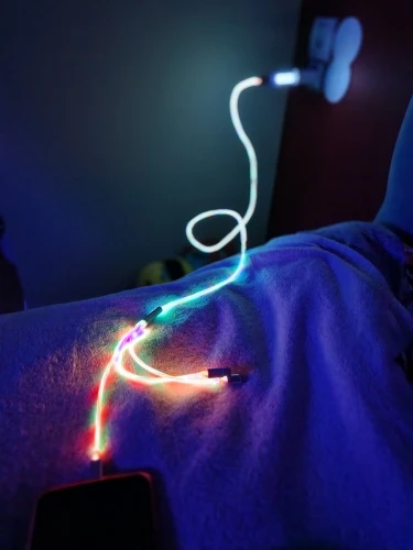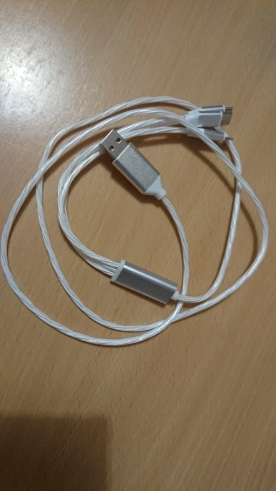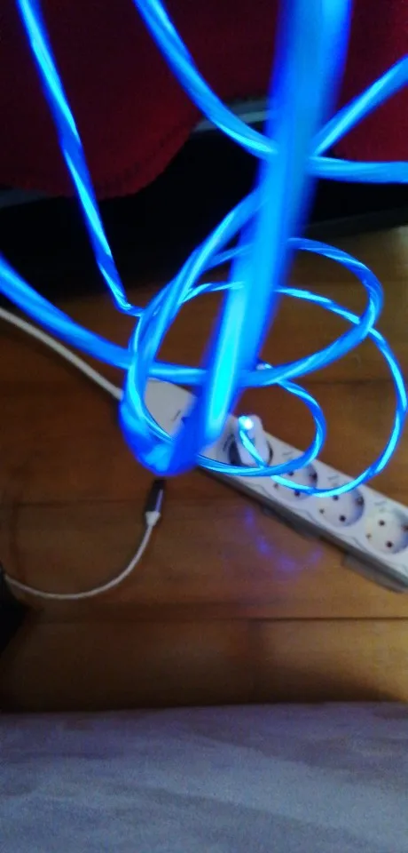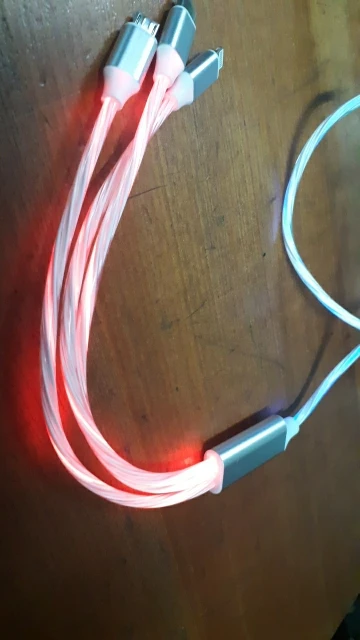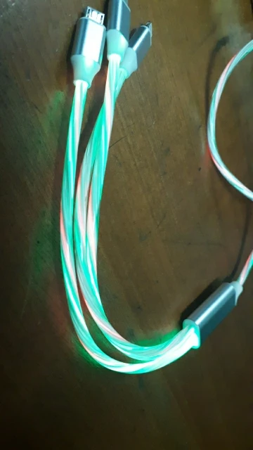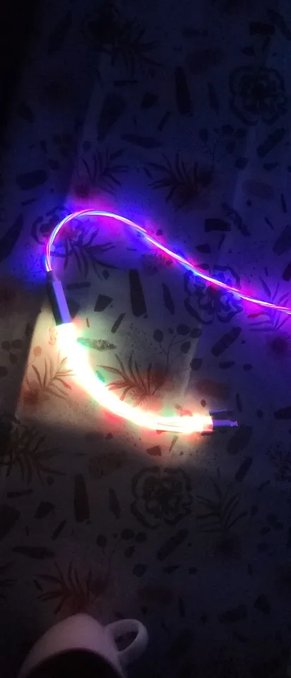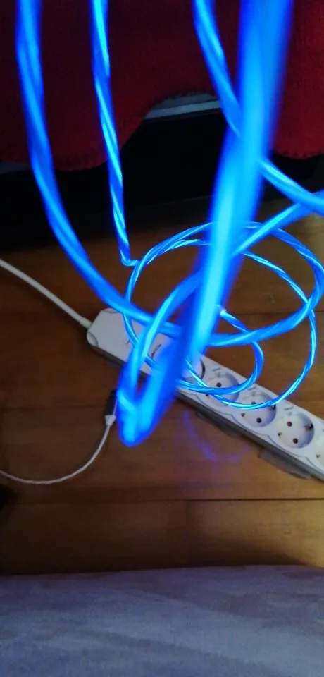 Получил быстро. Кабель очень яркий, я не ожидал его вообще, я думаю, что это будет более мягкий свет c действительно неоновые. Но он хорошо заряжается, будь то USB c или micro USB (я не тестирую 3 e, не имея телефона с этой наконечником) будет невозможно использовать его ночью, если вам нравится черная ночь, но если вам нравится иметь идеальный режим света c.