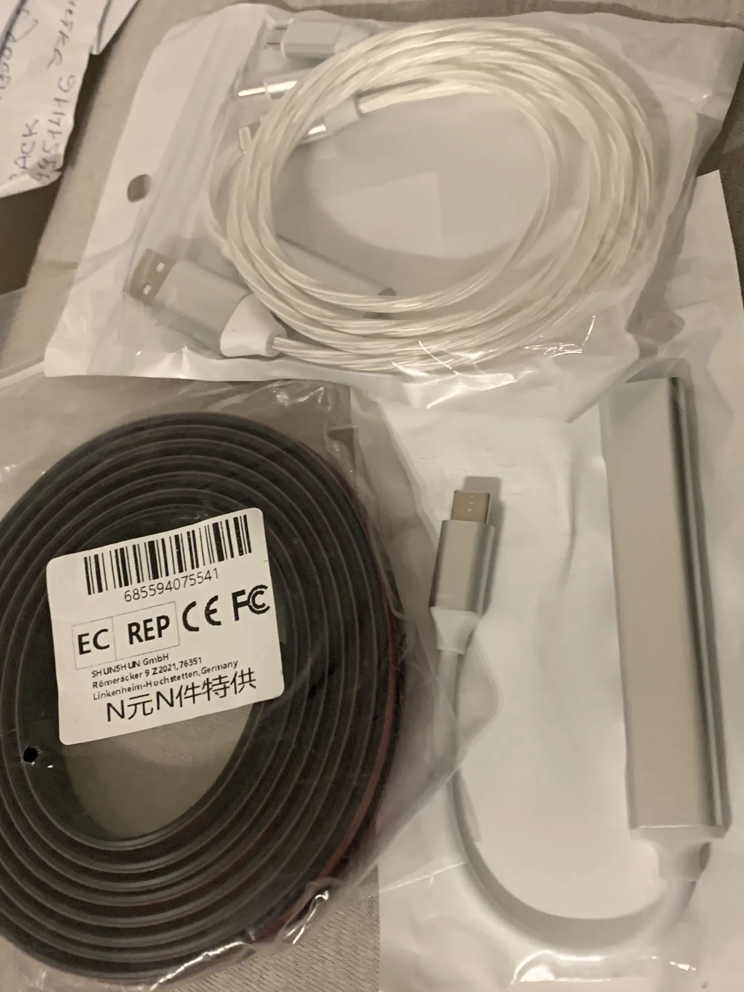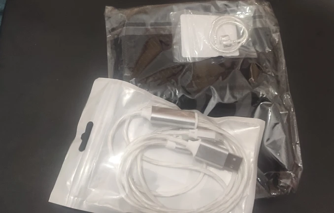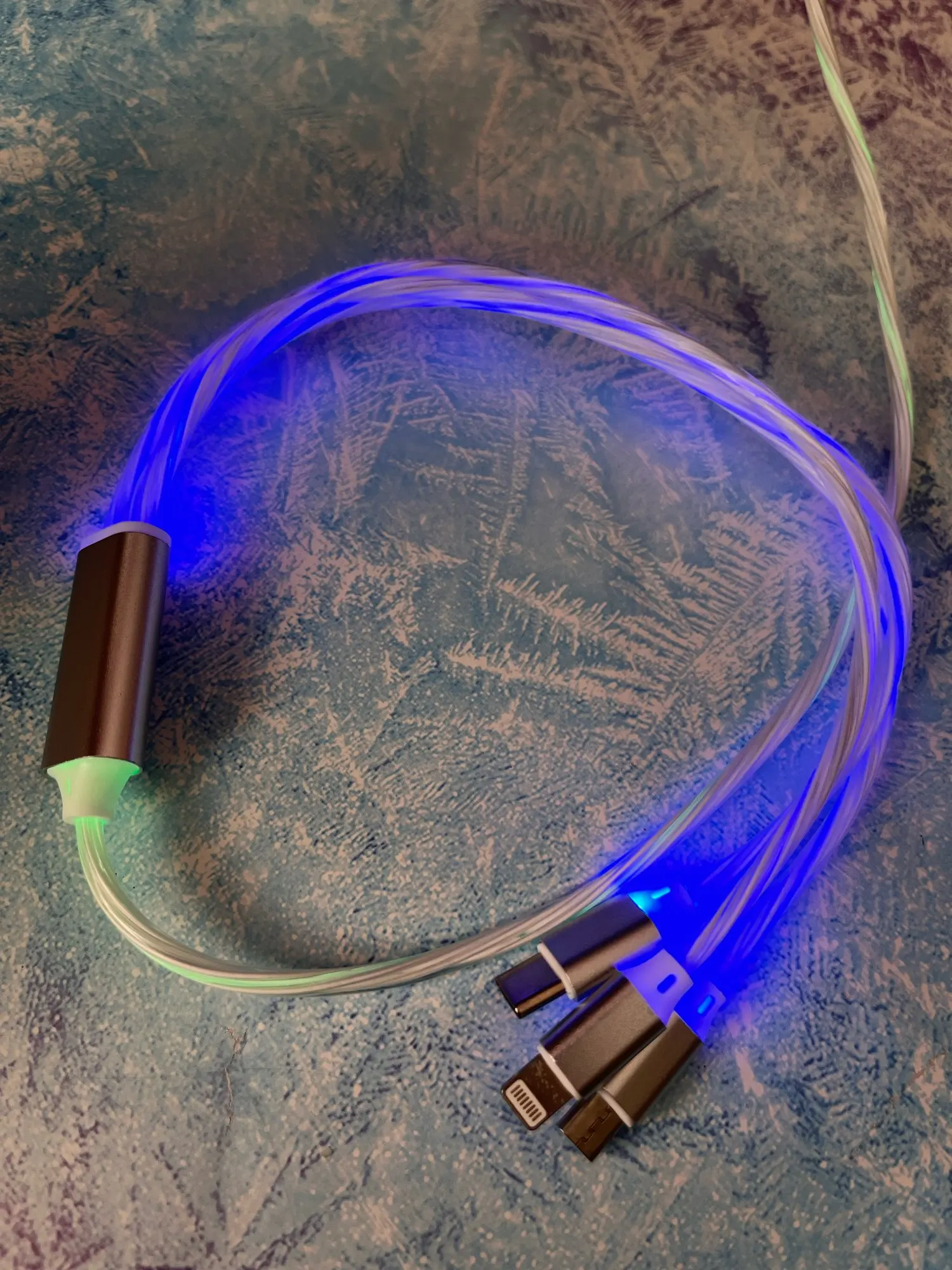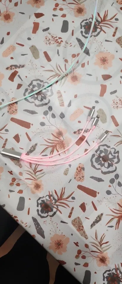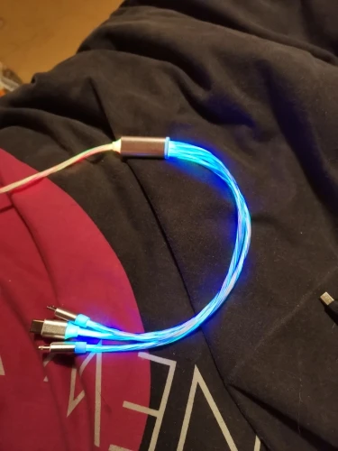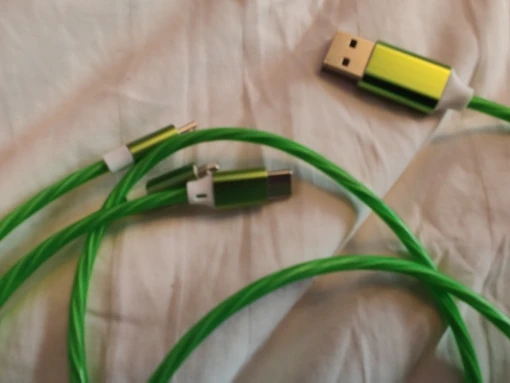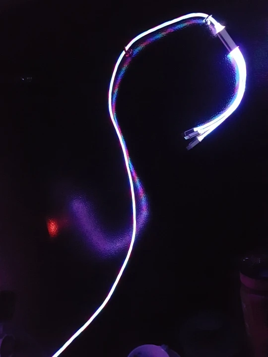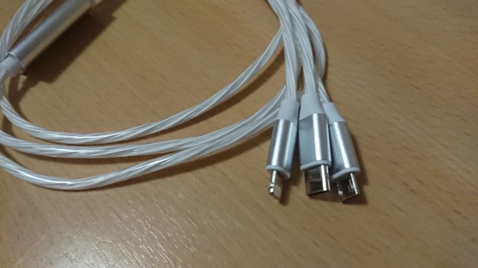 Получил быстро. Кабель очень яркий, я не ожидал его вообще, я думаю, что это будет более мягкий свет c действительно неоновые. Но он хорошо заряжается, будь то USB c или micro USB (я не тестирую 3 e, не имея телефона с этой наконечником) будет невозможно использовать его ночью, если вам нравится черная ночь, но если вам нравится иметь идеальный режим света c.