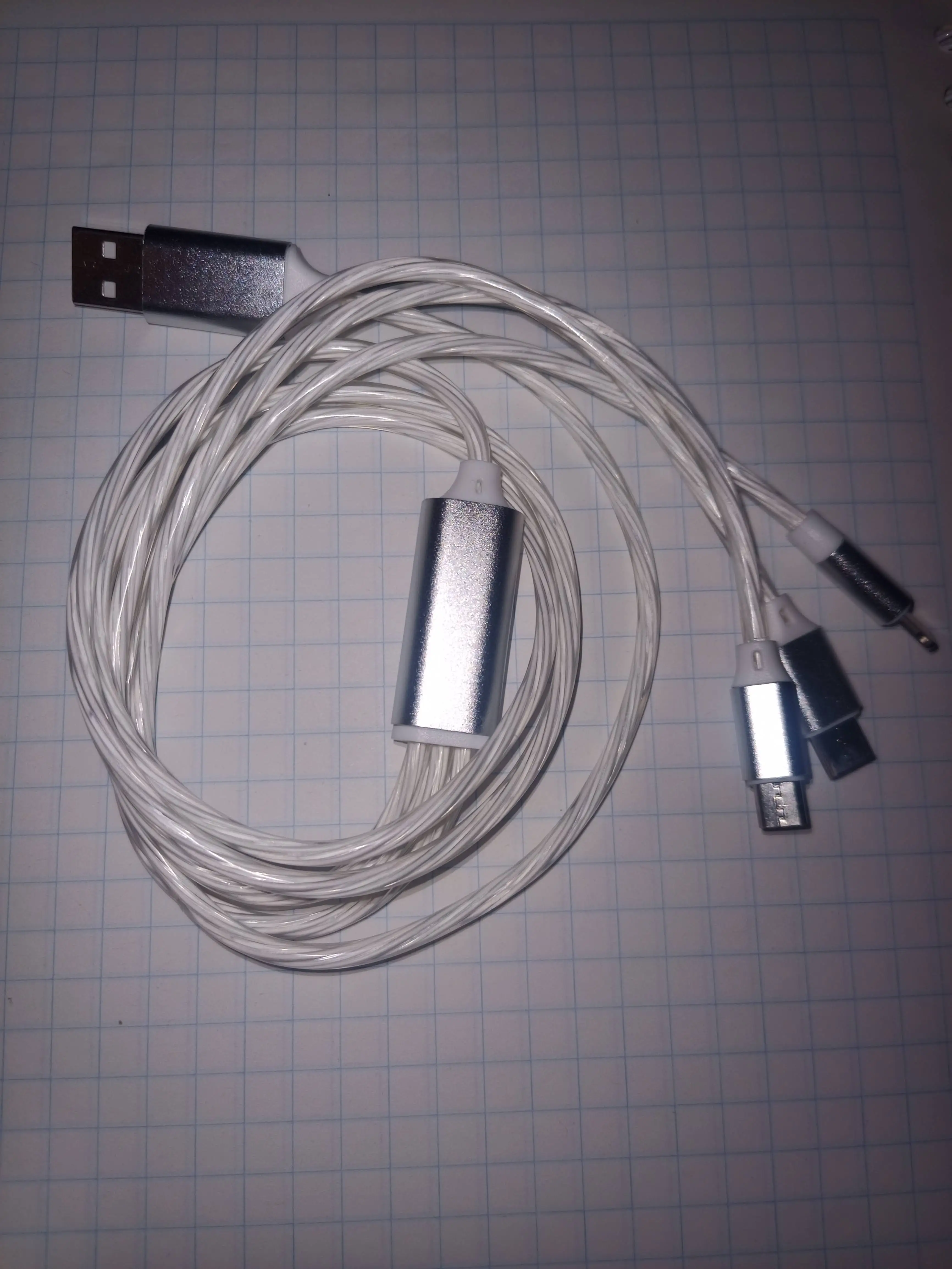 Кабель очень интересен визуально, последовательный, przelzyczajajизолированные три цвета, используется только для зарядки, не рекомендуется для powerbanków, так как такой же кабель может заряжать 140 мА