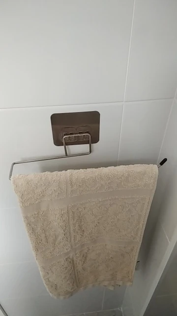 Он среднего размера, его нельзя использовать с большими полотенцами в ванной, но если он очень практичен для многих других предметов внутри ванной, полотенцы для рук и средних предметов без проблем, и самое лучшее-это его основа они прилипают к керамическим предметам, в которых много в ванной, и делают его очень удобным и простым в установке.