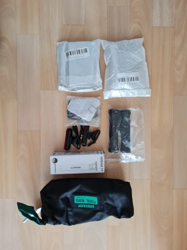 Он сделан из прочной ткани; Положите бортовой инструмент и держите его загруженным на вашем велосипеде.