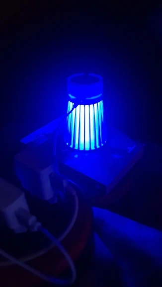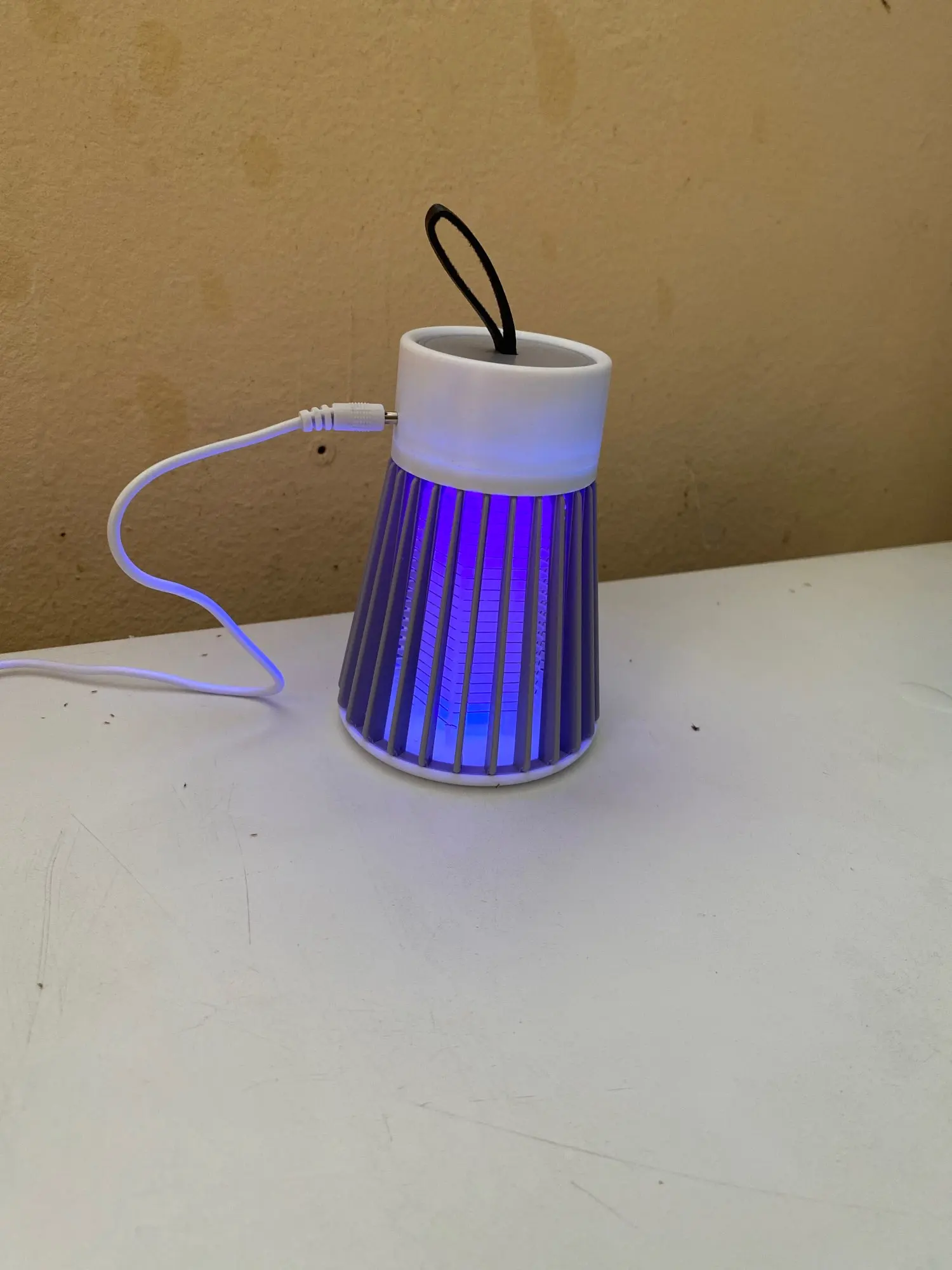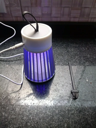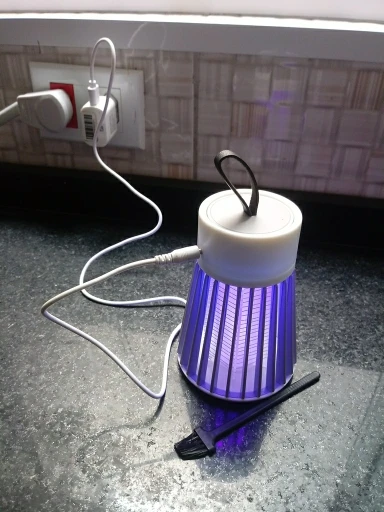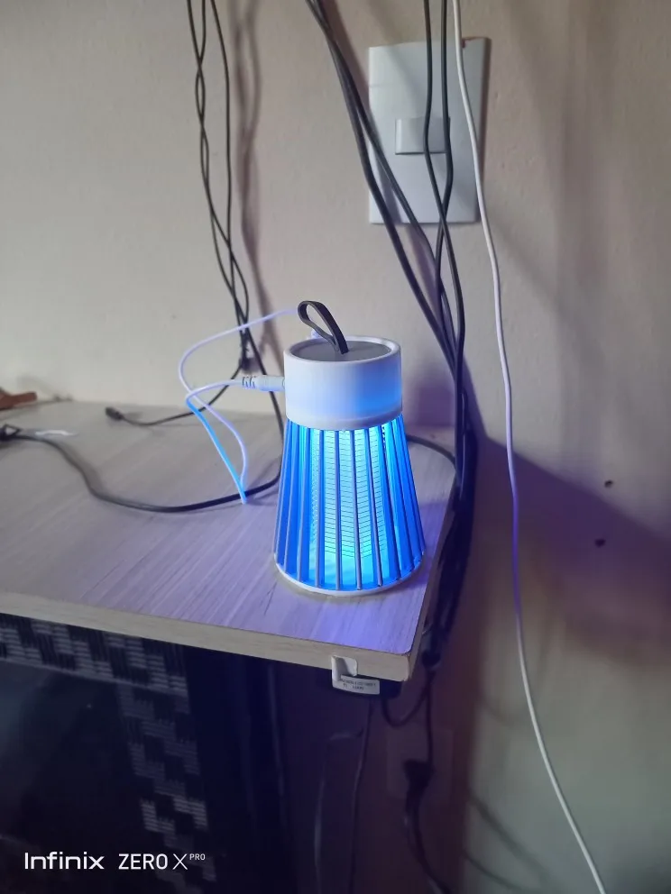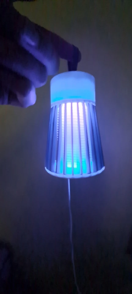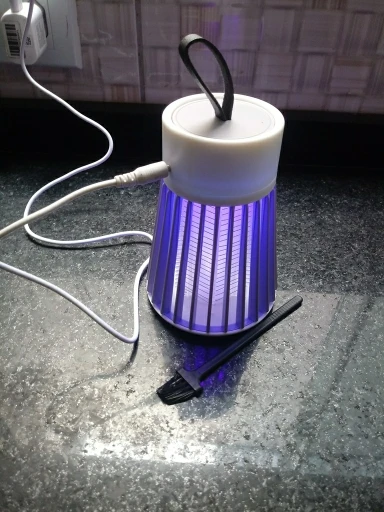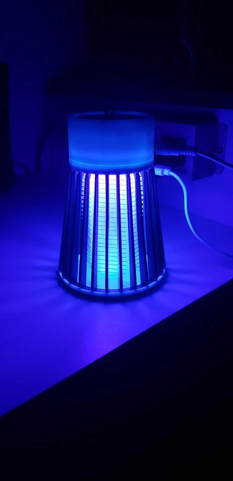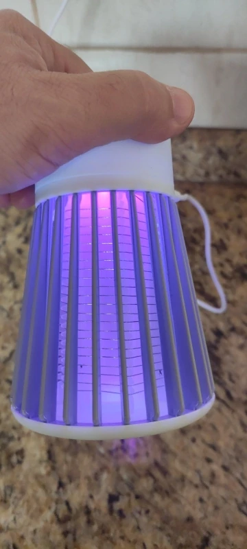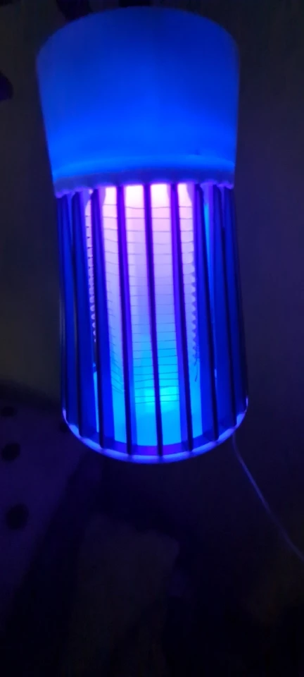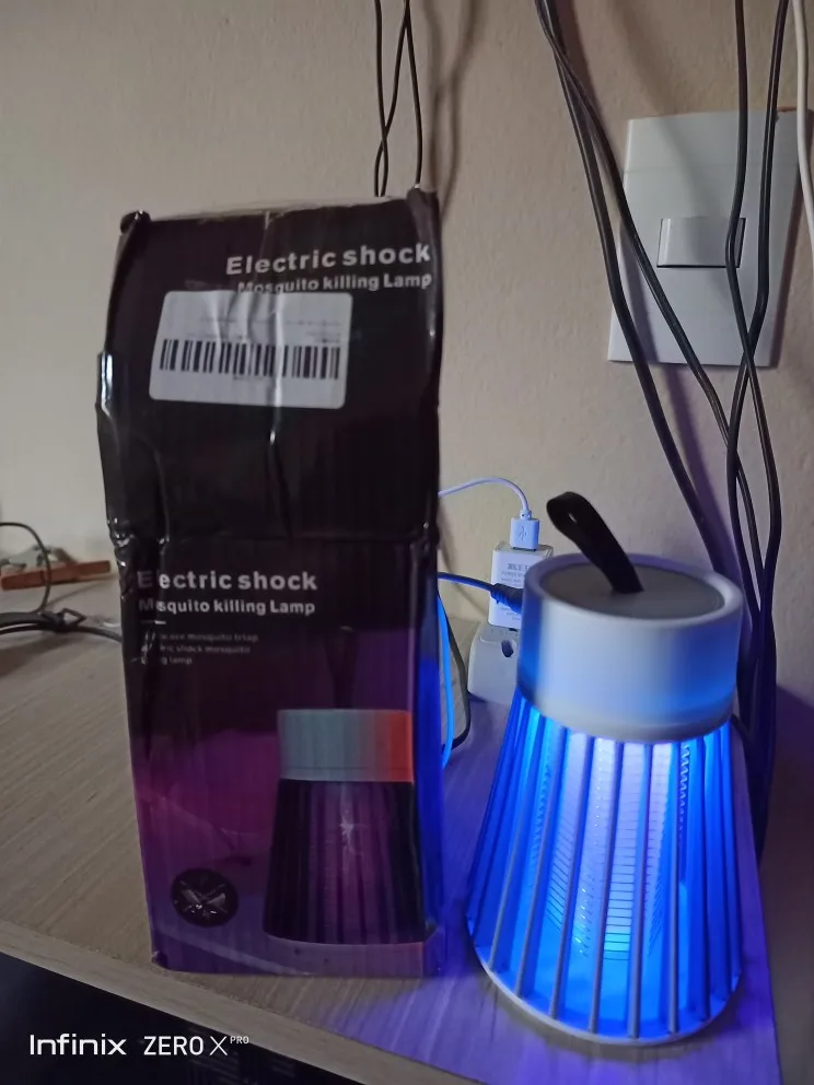 лампа пришла быстро но сломана была одна перегородка не беда приклеел кабель без вилки для разетки имейте виду работает пока нет комаров эффект работы не знаю ещё