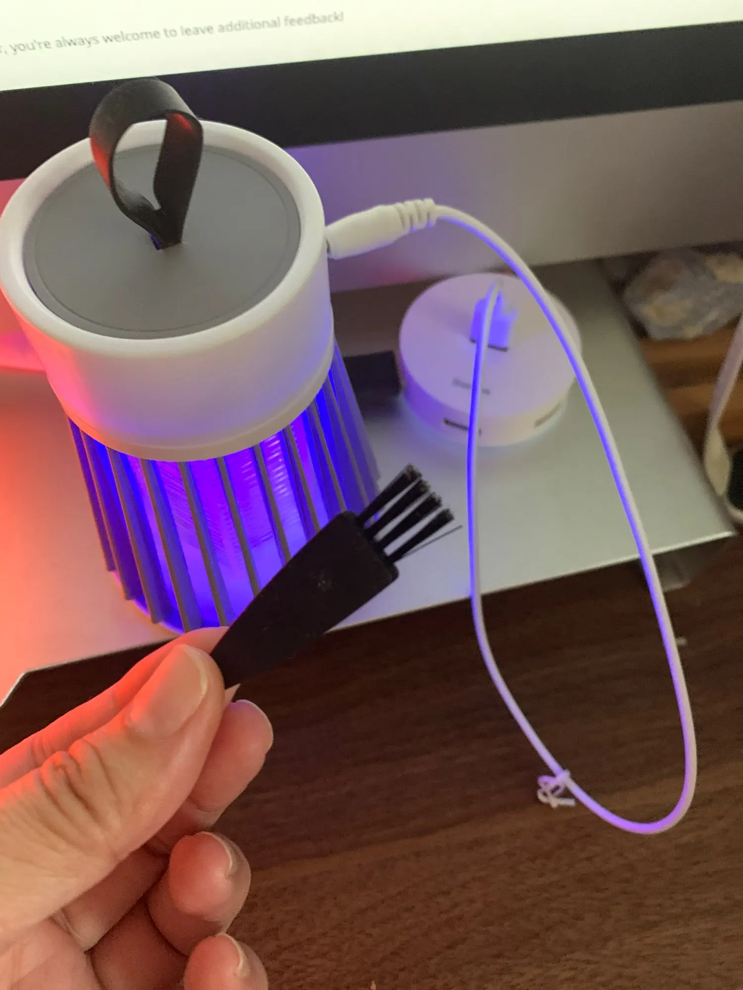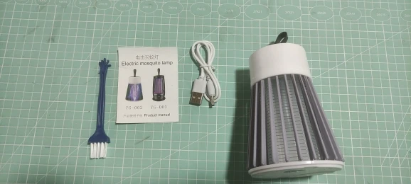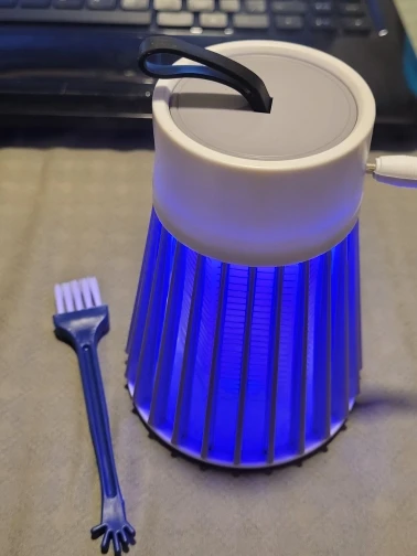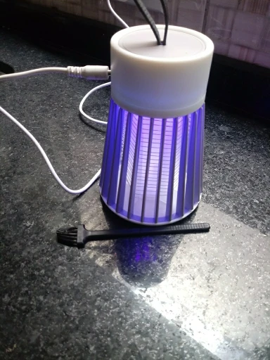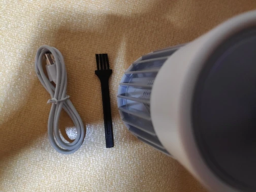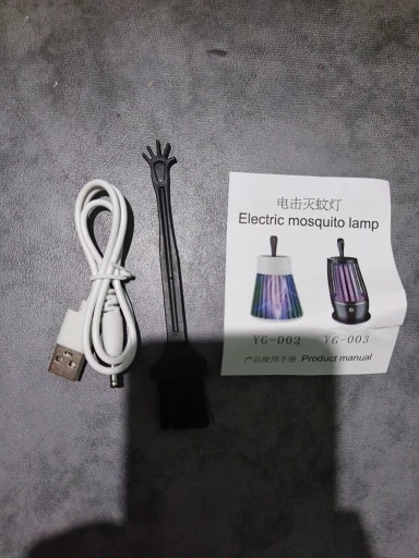 Этот продукт отличный! Он убивает множество насекомых от малых до средних размеров, он тихий и красивый, имеет широкий диапазон кабелей Этот продукт действительно оснащен крошечной метелкой и зарядным кабелем Я использую лампу в течение нескольких недель, и я рекомендую этот отличный продукт Его цена также очень справедливая!
