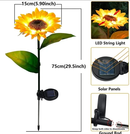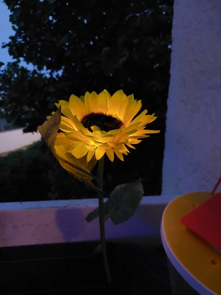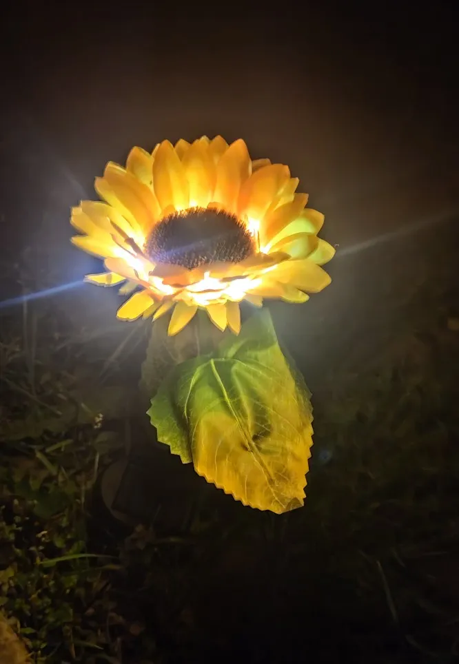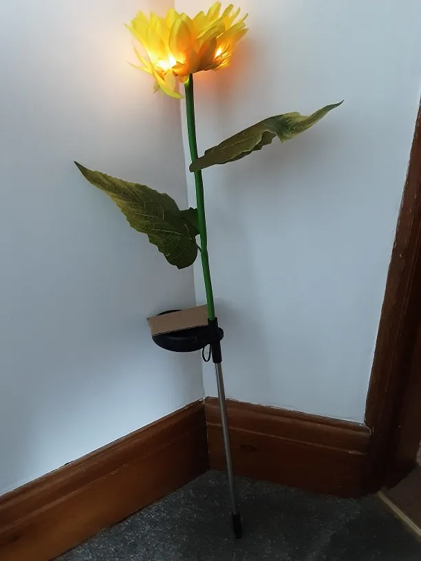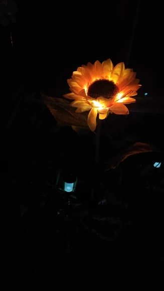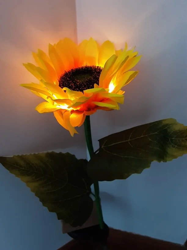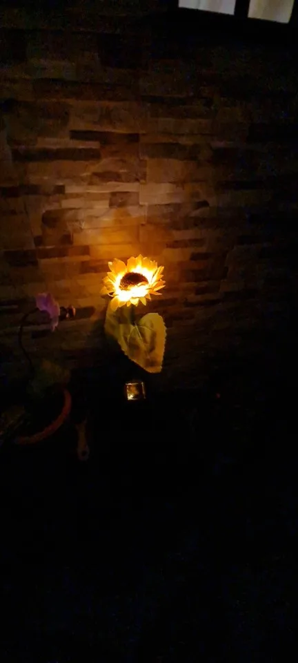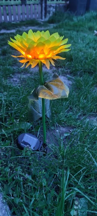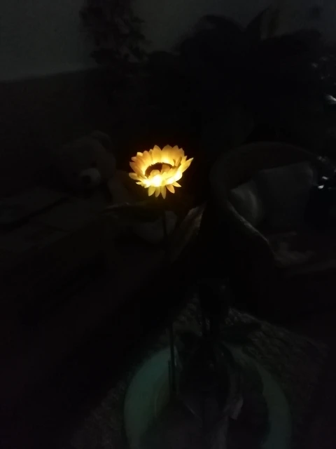 Отличный Солнечный Подсолнух, хорошо работает, не первый купленный, светится в темноте, мой другой работает уже две недели, и у нас было всего пару солнечных дней, но все еще светится, очень доволен ими, они выглядят так красиво, даже когда не горят, Заказ отправлен и получен очень быстро, хорошо упакован, рекомендую продавца, спасибо