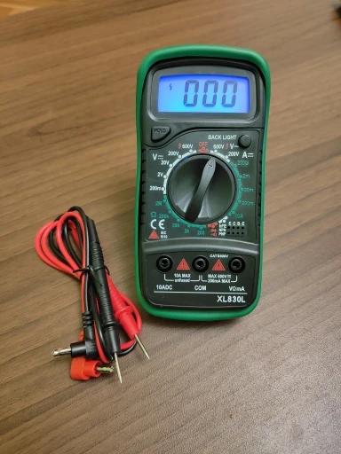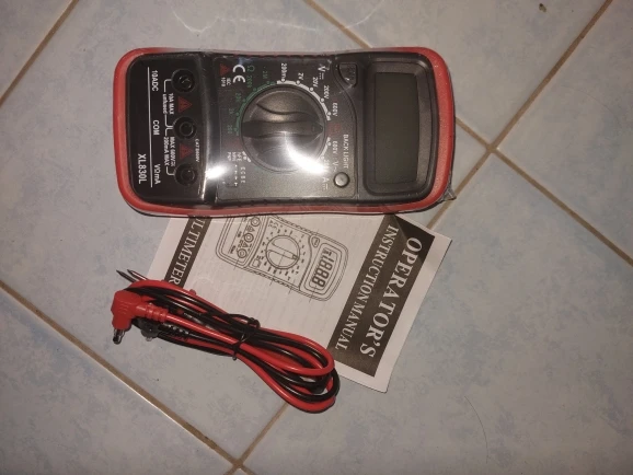 Мультиметр стандартний. Купив, щоб лежав в автомобілі. Прорезинений зелений обідок, ззадувисувна підставка, для стоячого положення. Живиться від батарейки крона. В комплекті немає. Треба докупати. Брав по акції тож зійде