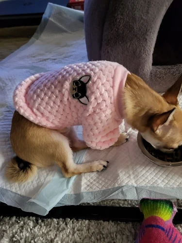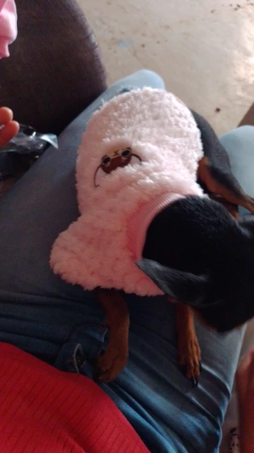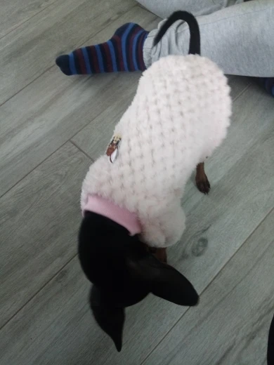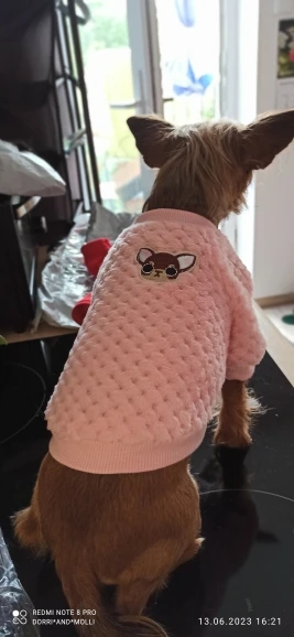 Очень хороший свитер. Довольно жарко. Хорошее качество. К сожалению, слишком маленький для моей собаки 2,5 kg года. Спасибо