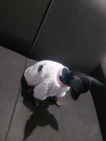 Свитерок очень хороший, мягенький. Оказался маловат на собаку 2 кг. Мишке в самый раз