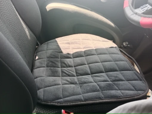 при використанні не сповзає з сидіння, м’яке. думаю затреться не швидко.