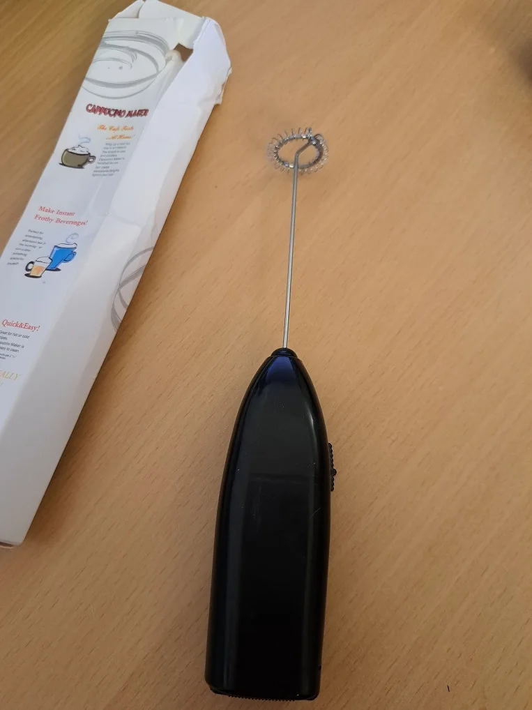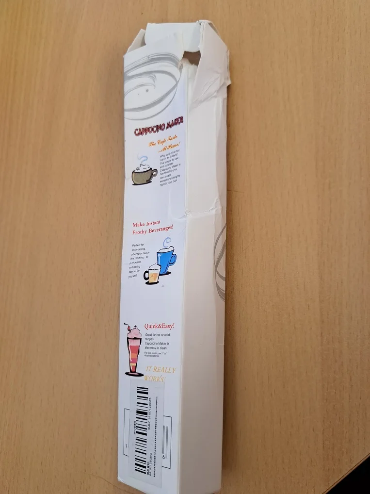 Коробка прибыла открытой, но, по крайней мере, продукт хорош и работает, хотя у него мало энергии, жидкость очень хорошо наполняется, но когда я хочу смешать кофе, сухая и немного молока сжимается, и это почти ничего не толстое. В противном случае это работает отлично.