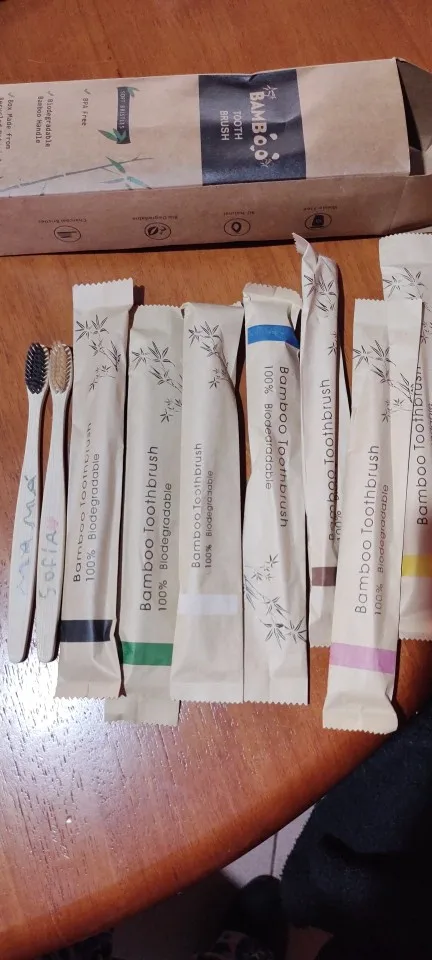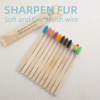 10 шт., Набор бамбуковых зубных щеток из воловьей кожи, зубная щетка из натурального бамбука, плоская тарелка, коробка из 10 бамбуковых зубных ...