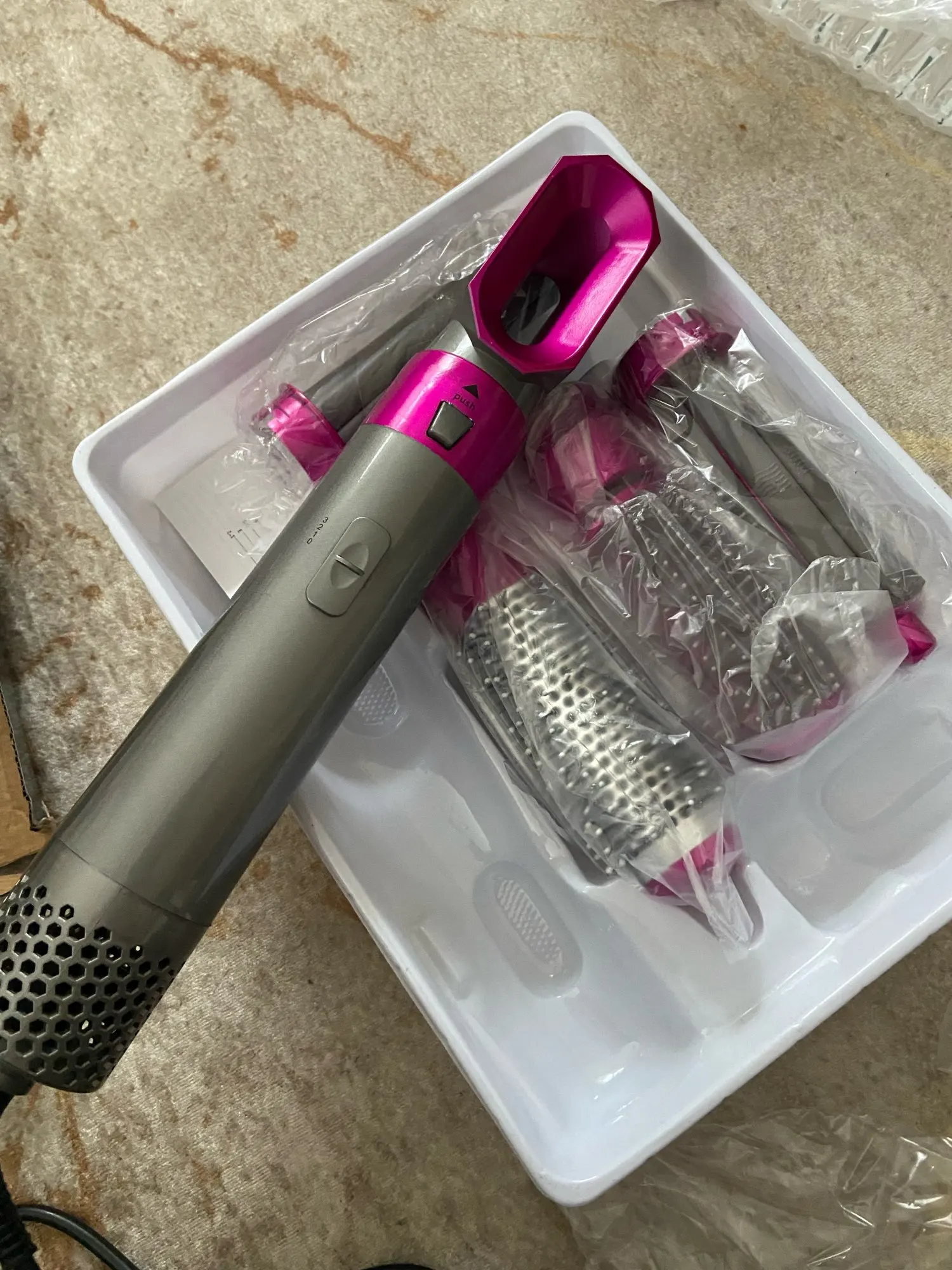 Я любил это. Это очень хорошее соотношение цены и качества. Хотя один из аксессуаров, которые смешивают волосы, не работает. Есть аксессуар для завивки волос на левой стороне, а другой для правой. Правая сторона не берет волосы. Но все остальные работают отлично. Я в восторге.