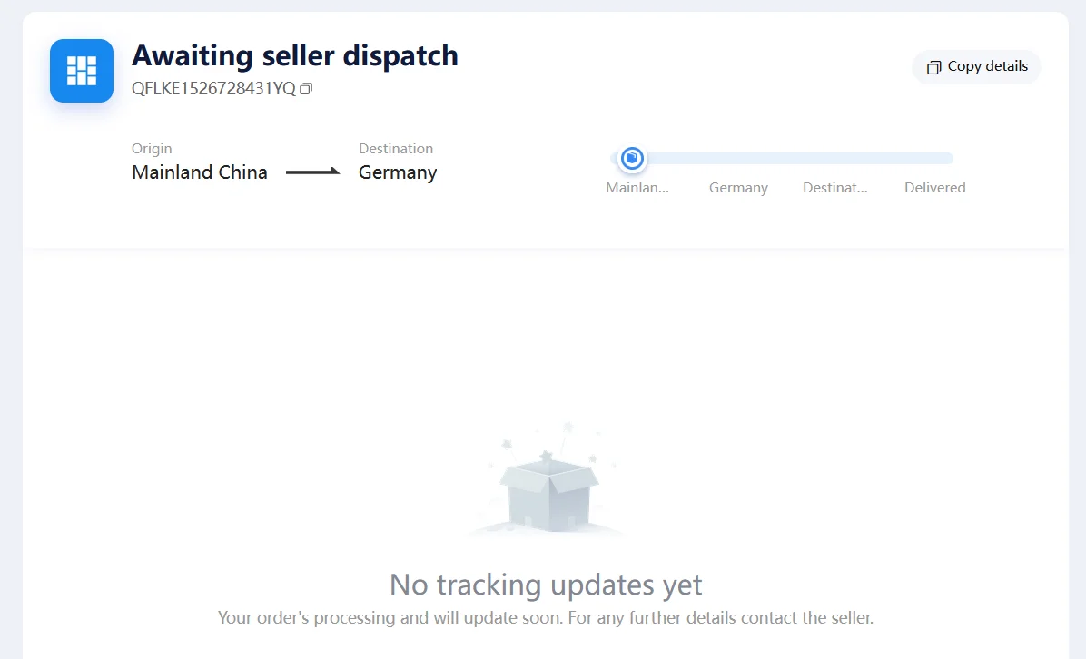 Продавец мошенник. Предоставляет поддельные номер отслеживания .. Тотальный мошенник, но в конце концов я получил возмещение от Али.