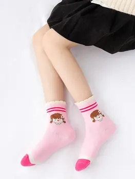 5 пар/партия, качественные розовые вязаные теплые детские носки с цветочным рисунком для девочек, новогодние носки детские короткие носки д...