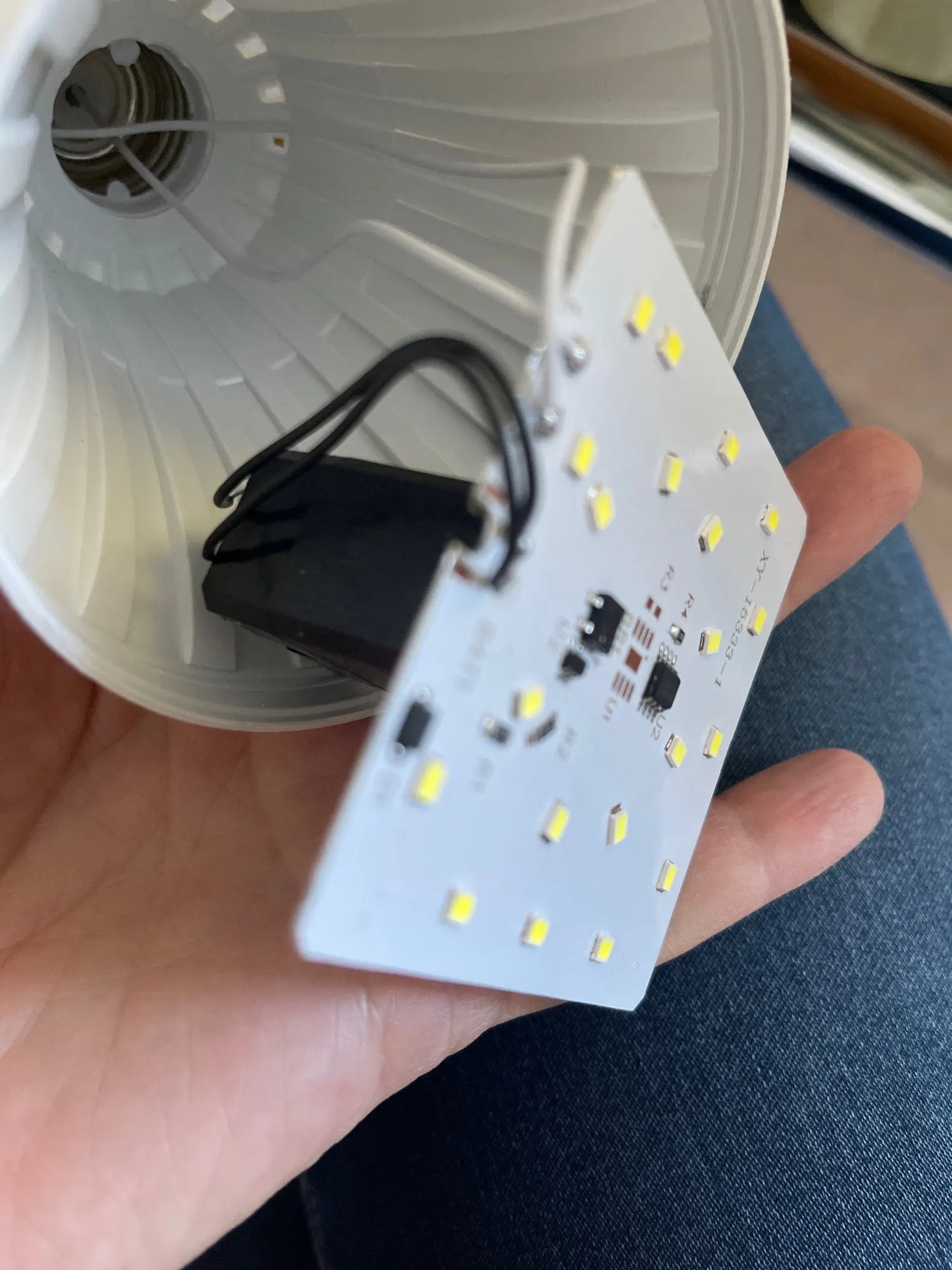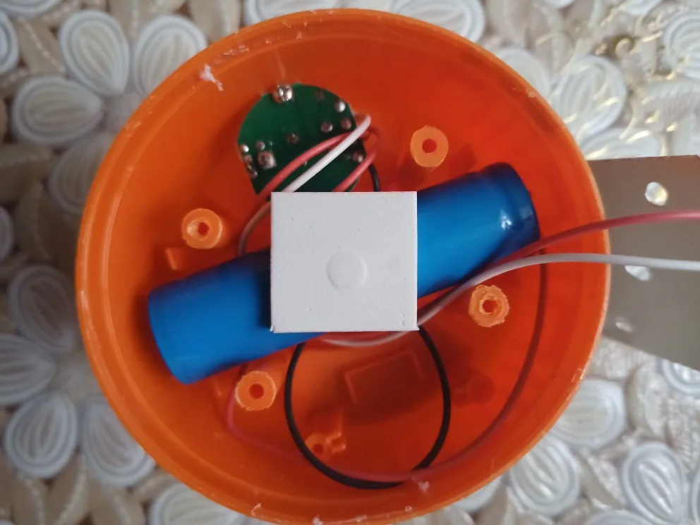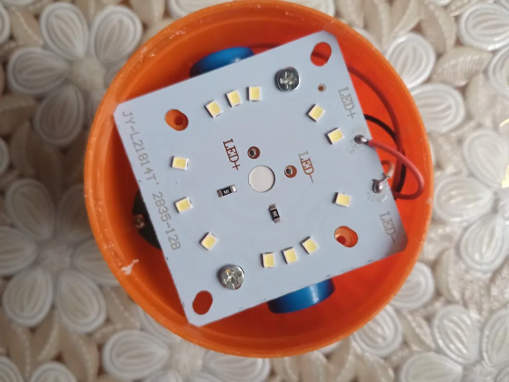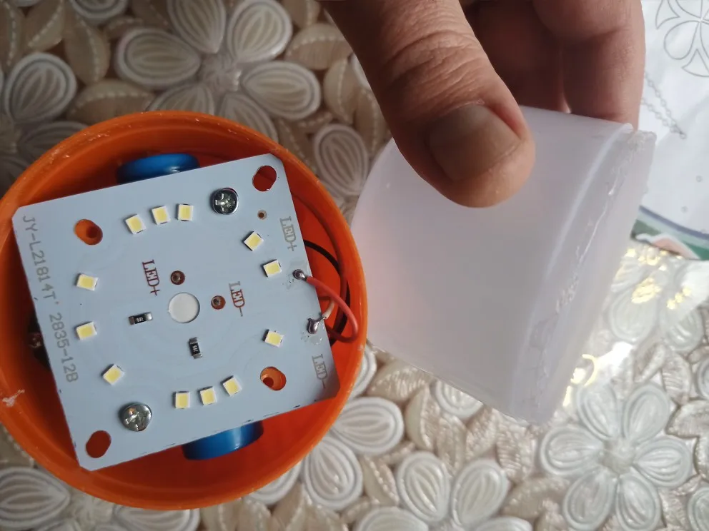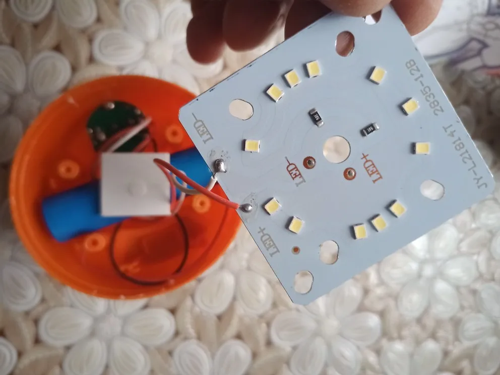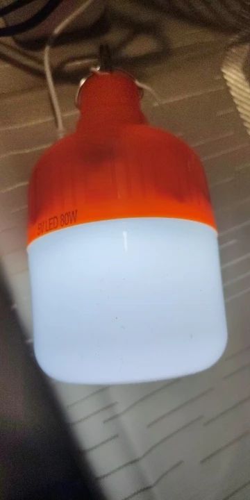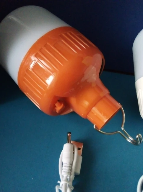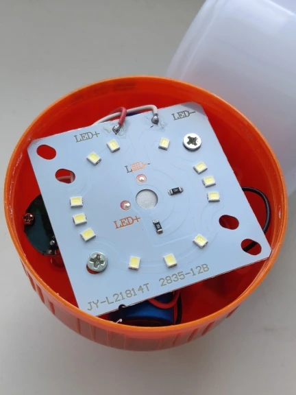 Xiaomi тут взагалі ні до чого. Як і 80W. Яскравість приблизно як 8w Led лампа, досить яскраво. Всередині плата з світлодіодами та 18650 аккумулятор без позначок, але дуже легкий. Може 1200мАг, може і меньше. До аккумулятора припаяні паяльником дроти. Взагалі працює непогано, легка, пластик не крихкий. Біла колба приєднана до помаранчевої бази клеєм типу момент,можна роз'єднати для огляду або вдосконалення.