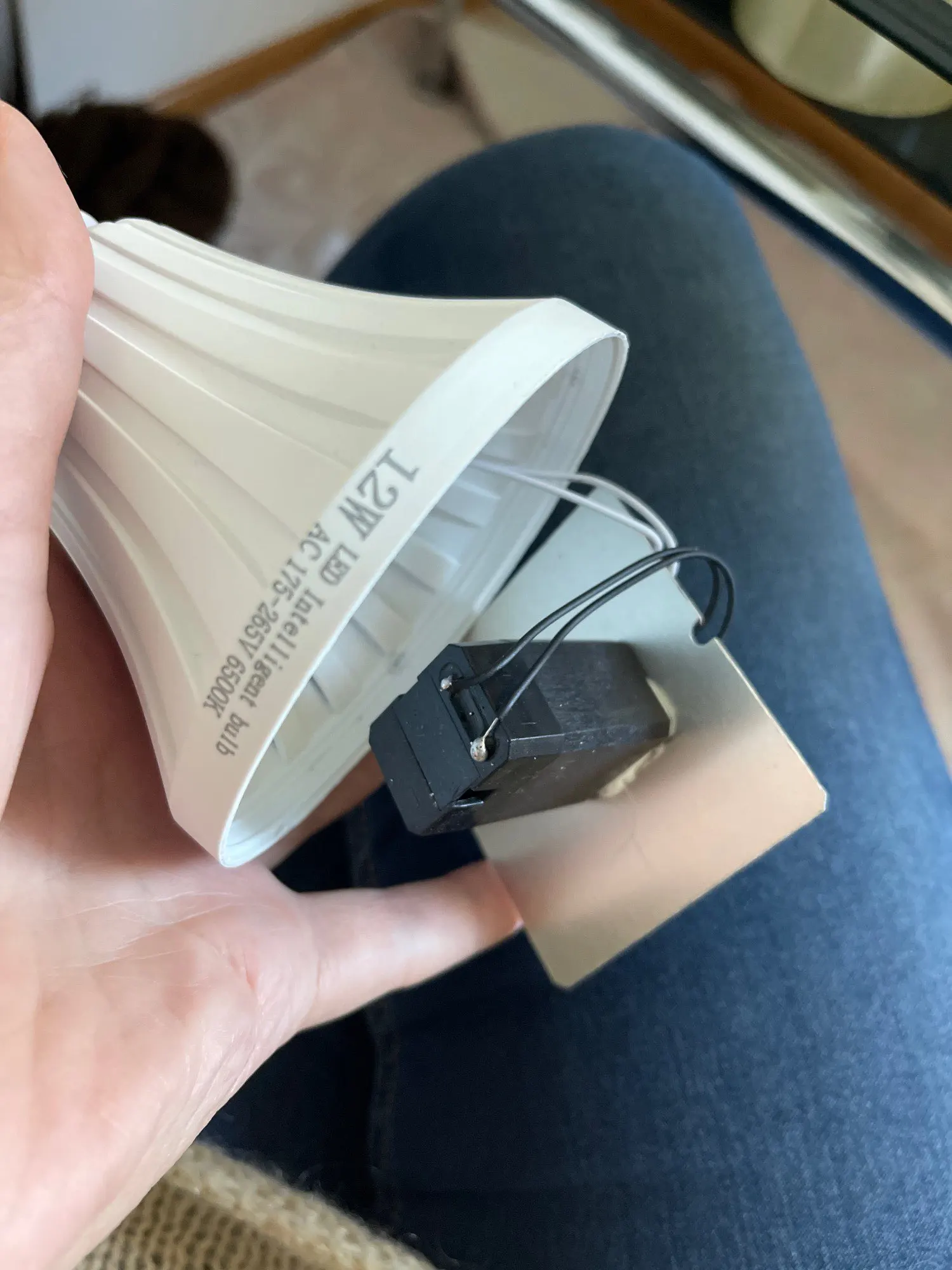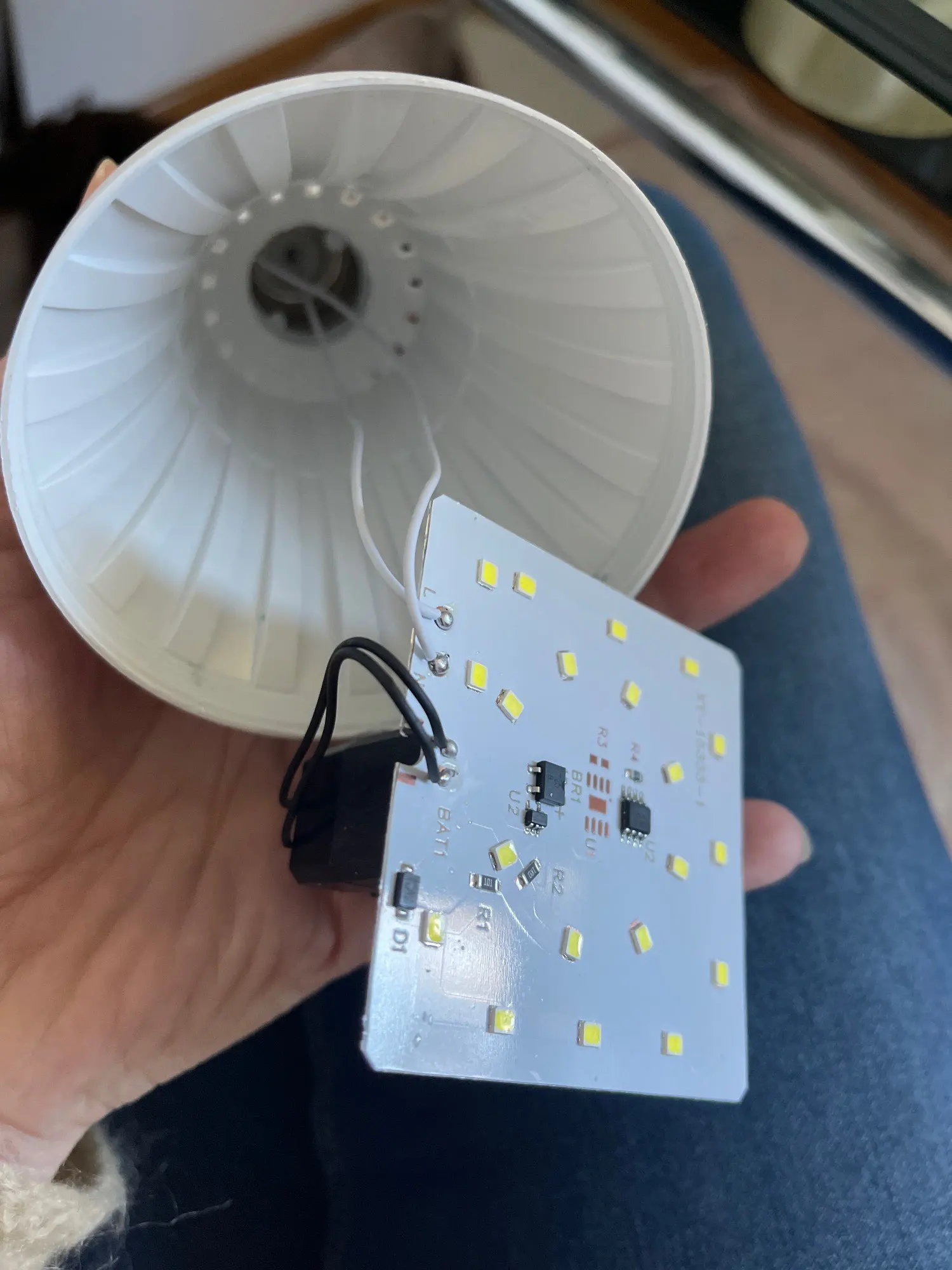 товар пришёл в очень мятой коробке, лампочка была разобрана на две части, но целая Работает, всё хорошо