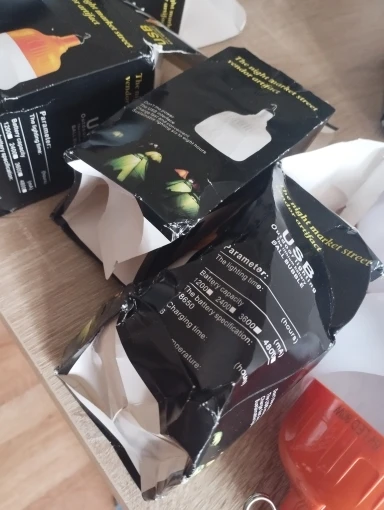 Долго был в дороге. Картонная упаковка порвана, заклеена скотчем. USB- шнур не исправен. Не заряжается фонарь. Другим эл.шнуром заряжается.