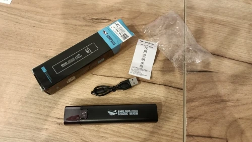 Хороший фонарик за разумные деньги. Пришёл в почтовое отделение в Мурманскую область за 55 (!) дней, хотя в Россию пришёл за 13 дней. По России перемещение не отслеживалось. Коробочка целая, не мятая. Товар надлежащего качества. В комплекте кабель для зарядки USB - microUSB. Имеет три режима работы. Во время зарядки работает мигающая красно-синяя индикация. Когда фонарик заряжен горит синяя индикация. Можно использовать в качестве пауэрбанка.