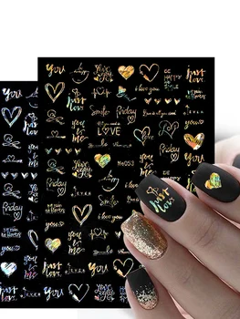1 шт., 3D лазерная наклейка для ногтей в форме сердца и букв, украшение для ногтей, цветок, звезда, аксессуары для ногтей, наклейки, наклейки, ма...