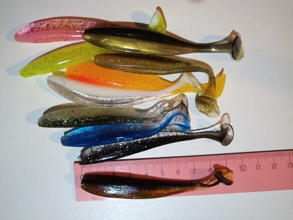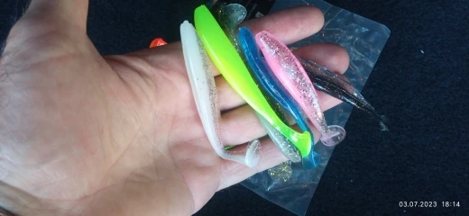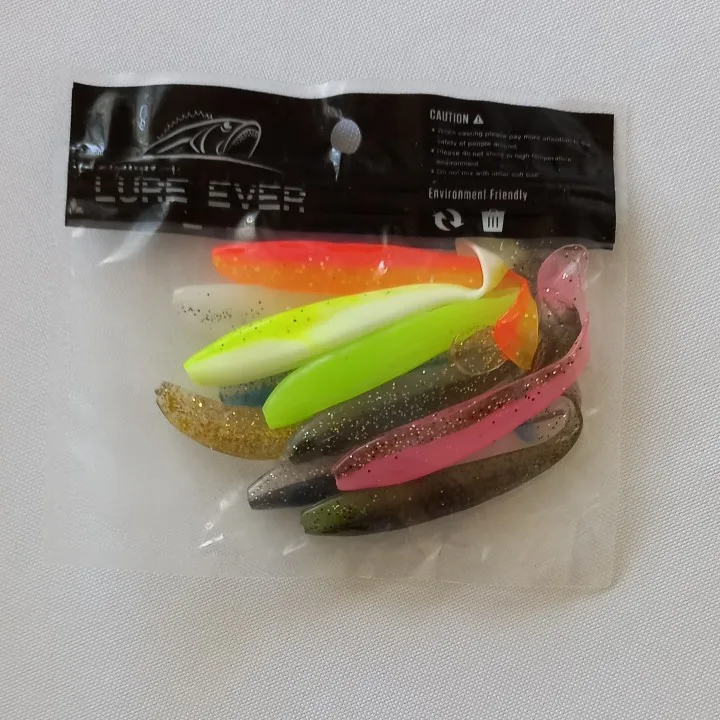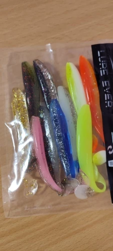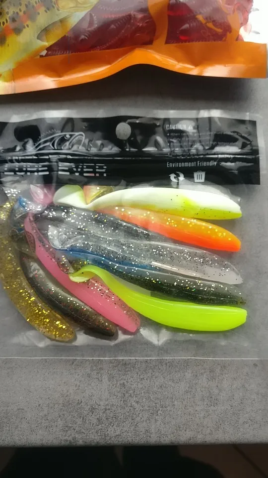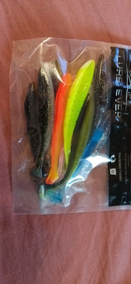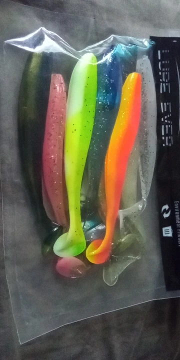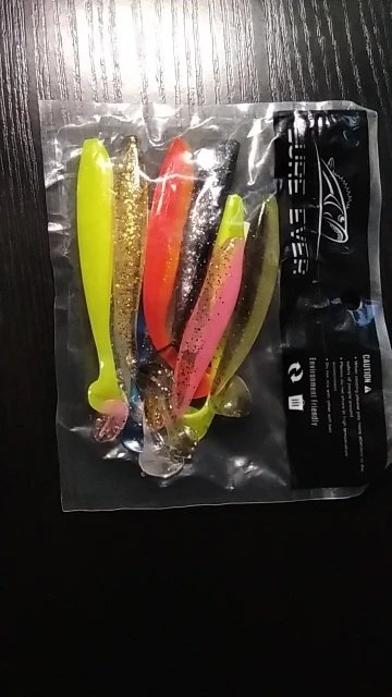 Отличные цвета. Хороший силикон. Пластиковая упаковка с закрытием. Мне очень понравилось! Я надеюсь зацепить большого морского окуня с помощью этих приманок!