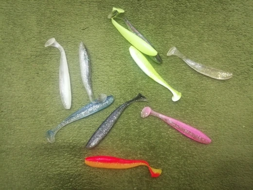Такую резину беру не в первый раз. Но в первый раз так дешево. Резина рабочая, судак берёт, проверено много раз. Кстати, в коробке они друг от друга не окрашиваются. Это плюс. Но с обычным силиконом держать нельзя! Происходит какая-то реакция.