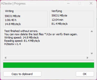 Выглядит хорошо, он работает, он ушел 2GB нормально, он все еще, надеюсь, он не будет неисправен после того, как я буду использовать память все скорость копирования и 16Mbs