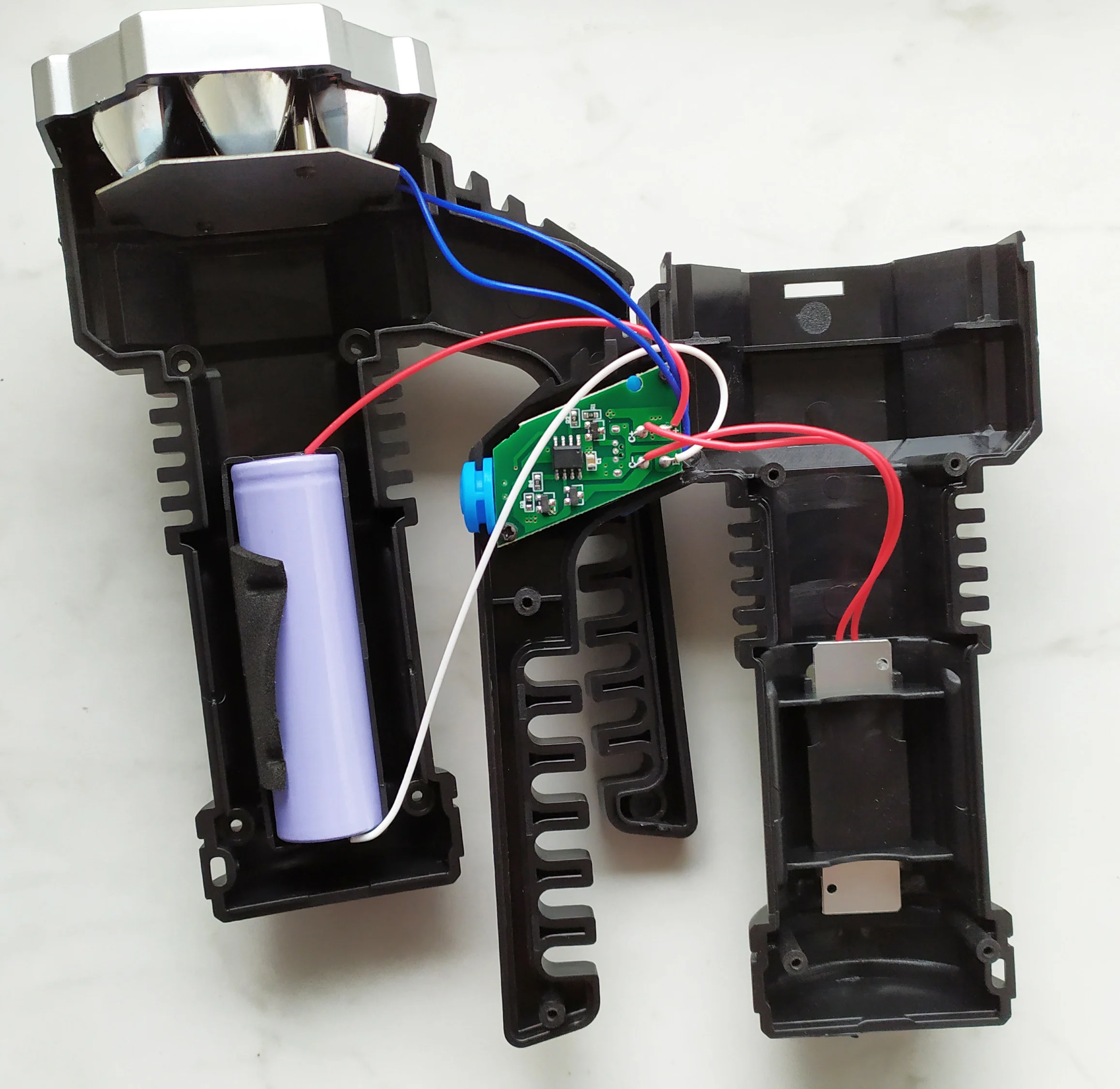 Доставка посылки быстрая - 22 дня, Укрпошта. Фонарик понравился, размер небольшой (на фото выглядит больше), есть 4 режима работы - основной яркий, эконом, мигающий и боковая COB-пластина, внутри аккумулятор 18650 без маркировки, ёмкость по USB-тестеру 870 mAh, на полном заряде основной яркий режим проработал 3 часа.