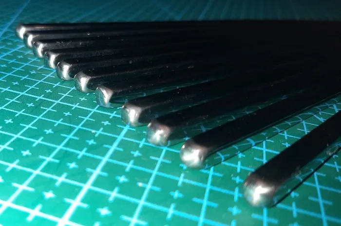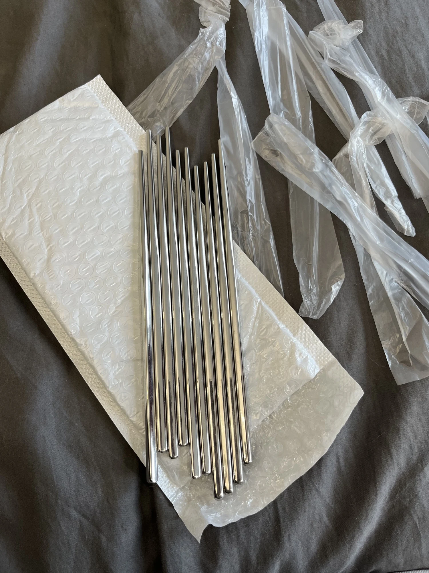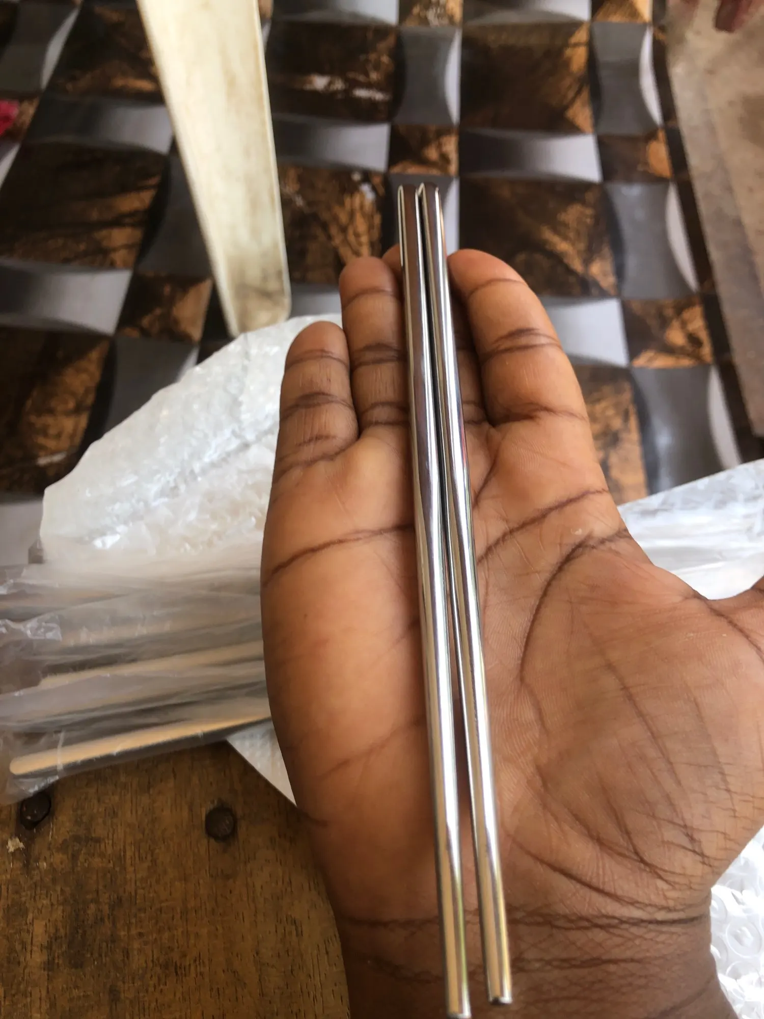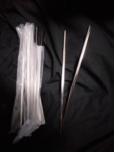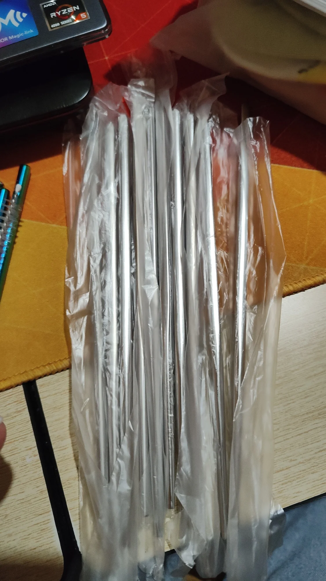 Все пять пар шаров, которые обещает продавец, прибыли. В паршивой упаковке, рядом со всем остальным алиэкспресс-выбором, как картофель в сумке. Эти палочки не сделаны из стали или мечты... Они ничего не весят, они звучат, ударив их слишком легко, и я даже подозревал, что это пластик, но при Царапине это показывает, что это металл. Может быть, алюминий или другой легкий сплав. Они выглядят хорошо, и для их функции это делает, что важно.