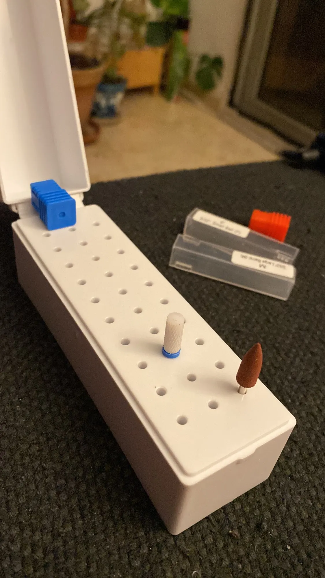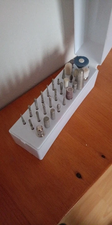 Этот футляр для боров очень удобный. Я купил жене электрическую точилку для ногтей с набором боров для обложки и полировки ногтей. Этот инструмент очень удобно хранить в этом футляре с гнёздами. Куплю такой футляр и себе, чтобы хранить боров для дремеля.