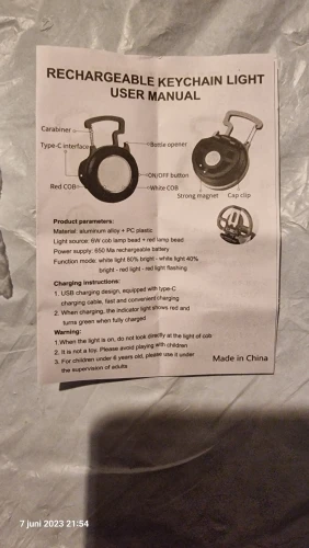 Очень хорошо, мини светодиодная лампа COB идентична описанию объявления. Уже хорошая точка, объявленная автономность велика, чем другие лампы того же стиля, 650mha по сравнению с 500 для других. Тогда, помимо боковой стороны гаджета, это действительно практичная, маленькая лампа, а не везде. В качестве опоры он имеет основание, 1 клип (или крючок) и магнит; Его можно использовать в нескольких обстоятельствах. Несколько режимов белого света и 2 режима красного света (фиксированный и мигающий). Это отличная ключевая лампа и аксессуары открывают бутылку.